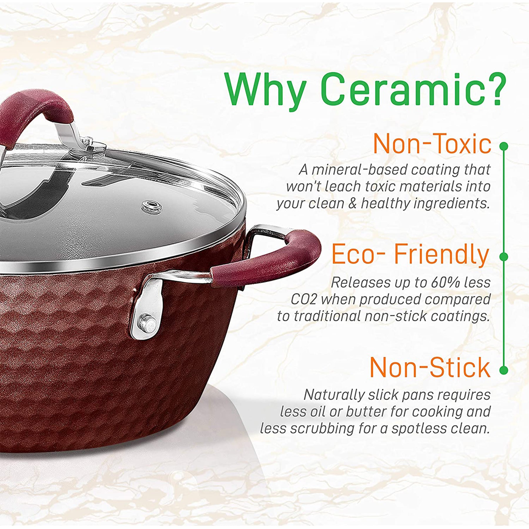 • Includes 1.7-quart saucepan pot with lid, 3.6-quart Dutch oven pot with lid, 2.1-quart cooking pot with lid, 11-inch large fry pan, 8-inch small fry pan, soup ladle, pasta fork, and spatula