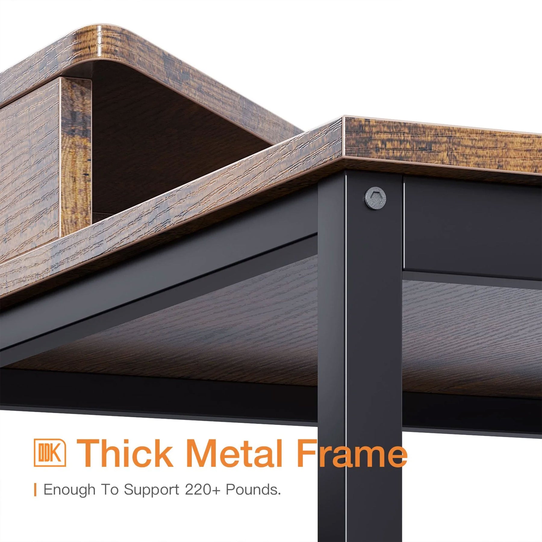 • With a thick metal frame and premium desktop, the desk can support up to 220 pounds