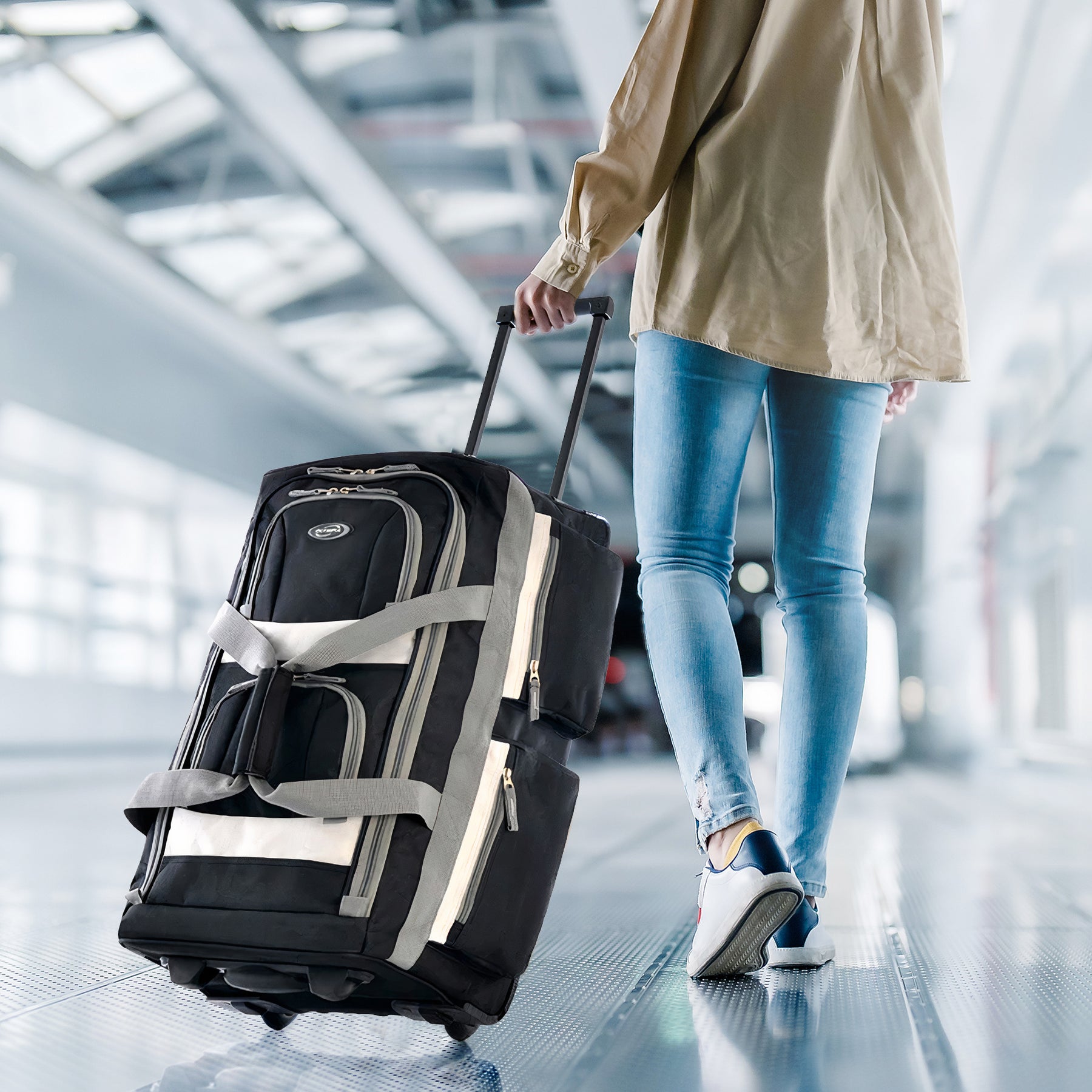 • Rolling 8 pocket duffel bag keeps all your belongings organized for convenient travel