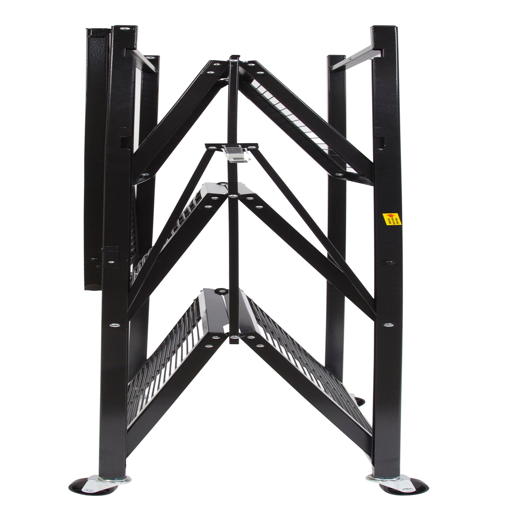 • Simply unfold, flip the top shelf, latch, and it's ready to use in 20 seconds