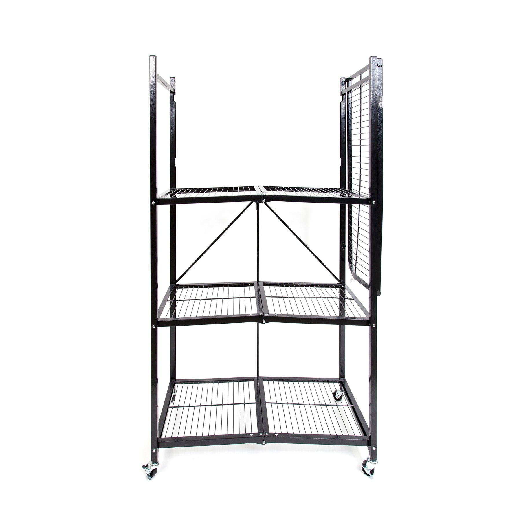 Best of all, these rolling carts require no tools or lengthy assembly time. To set up, unfold the wire shelving frame, flip the top shelf down, and secure the patented Origami connection clip. You're ready to store bins and boxes in just about 20 seconds! Simply fold the storage carts flat when not in use.