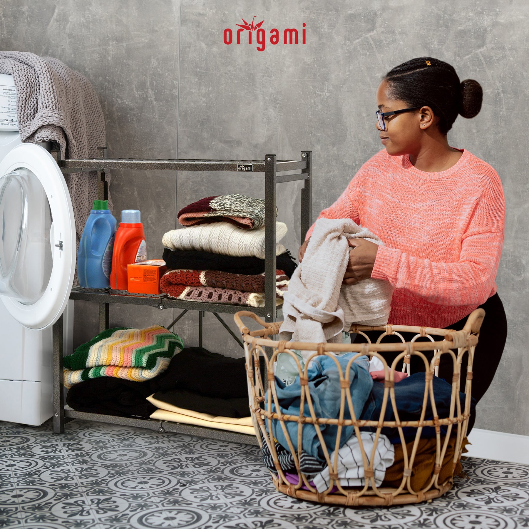 Declutter your life and add a little more organization to your home or workspace with this 6-pack of the Origami R3 General Purpose Foldable 3-Tiered Shelf Storage Rack.