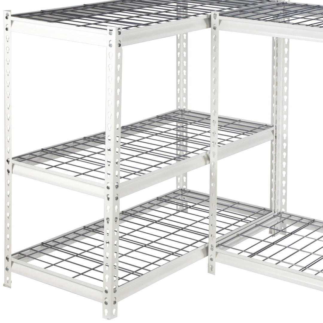 - Supports 600 pounds per shelf when distributed evenly and 3,000 pounds total