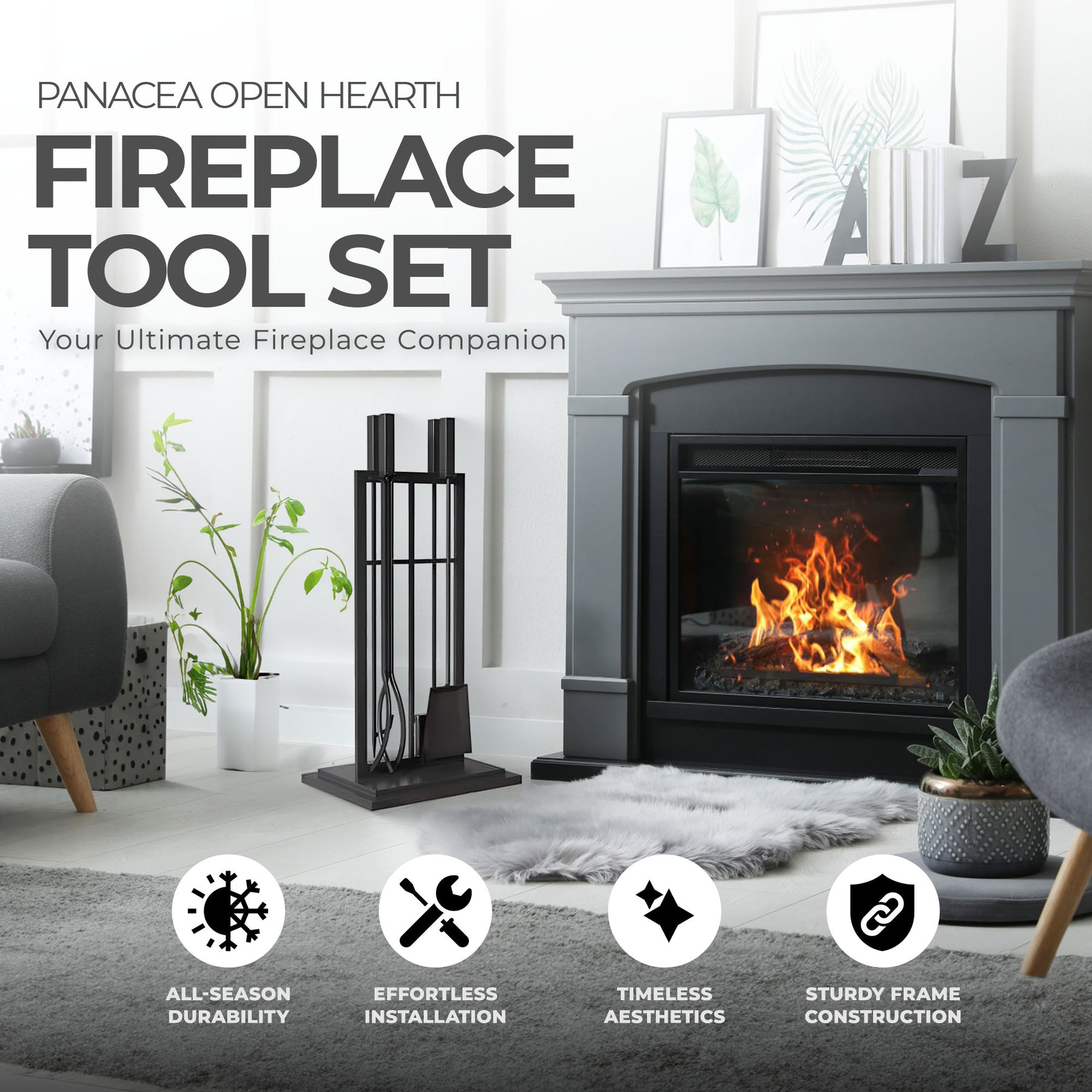 Panacea Hearth Fireplace Tool Set w/Brush, Shovel, Poker, Tong & Stand(Open Box)