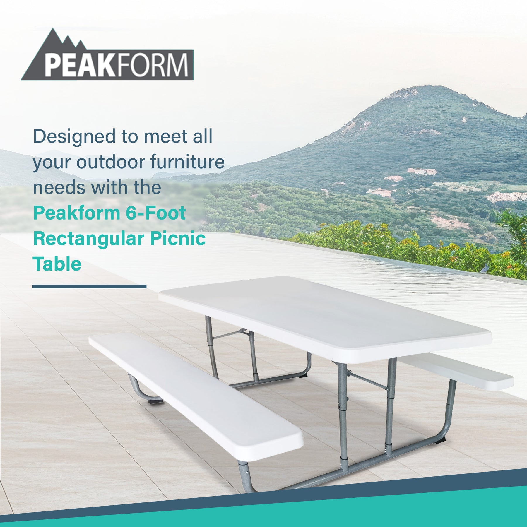 Peakform 6ft Picnic Table, Double Bench Wood Grain Seating, White (Open Box)