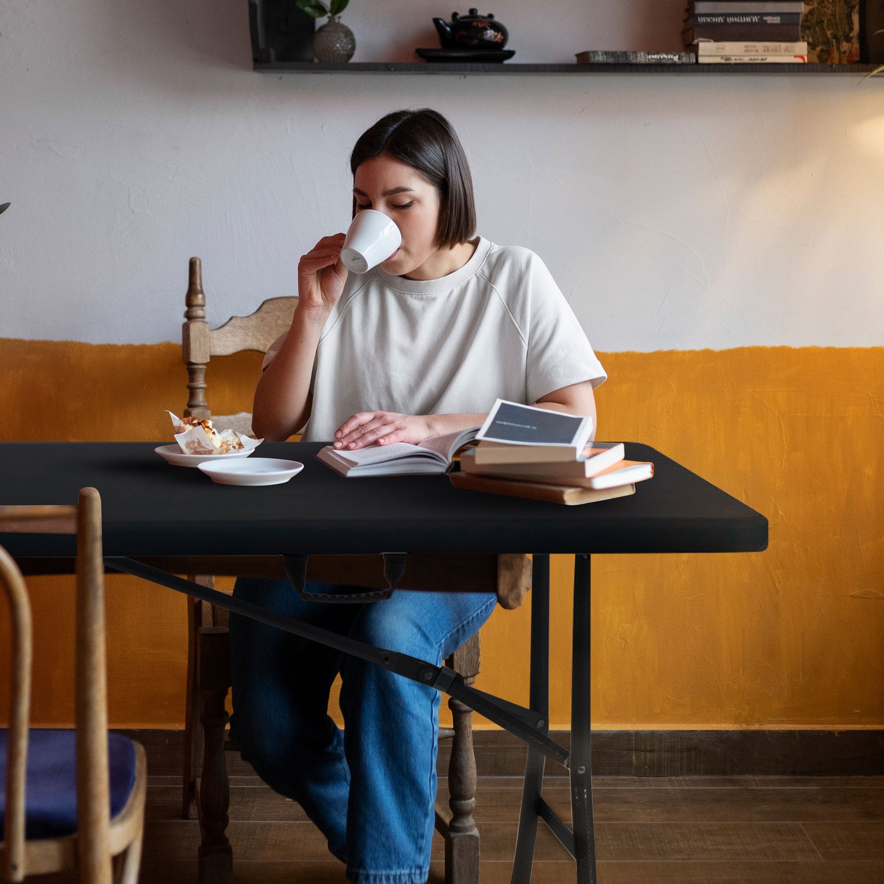 • Durable tabletop resists water, scratches, and stains, making it ideal for both indoor and outdoor use