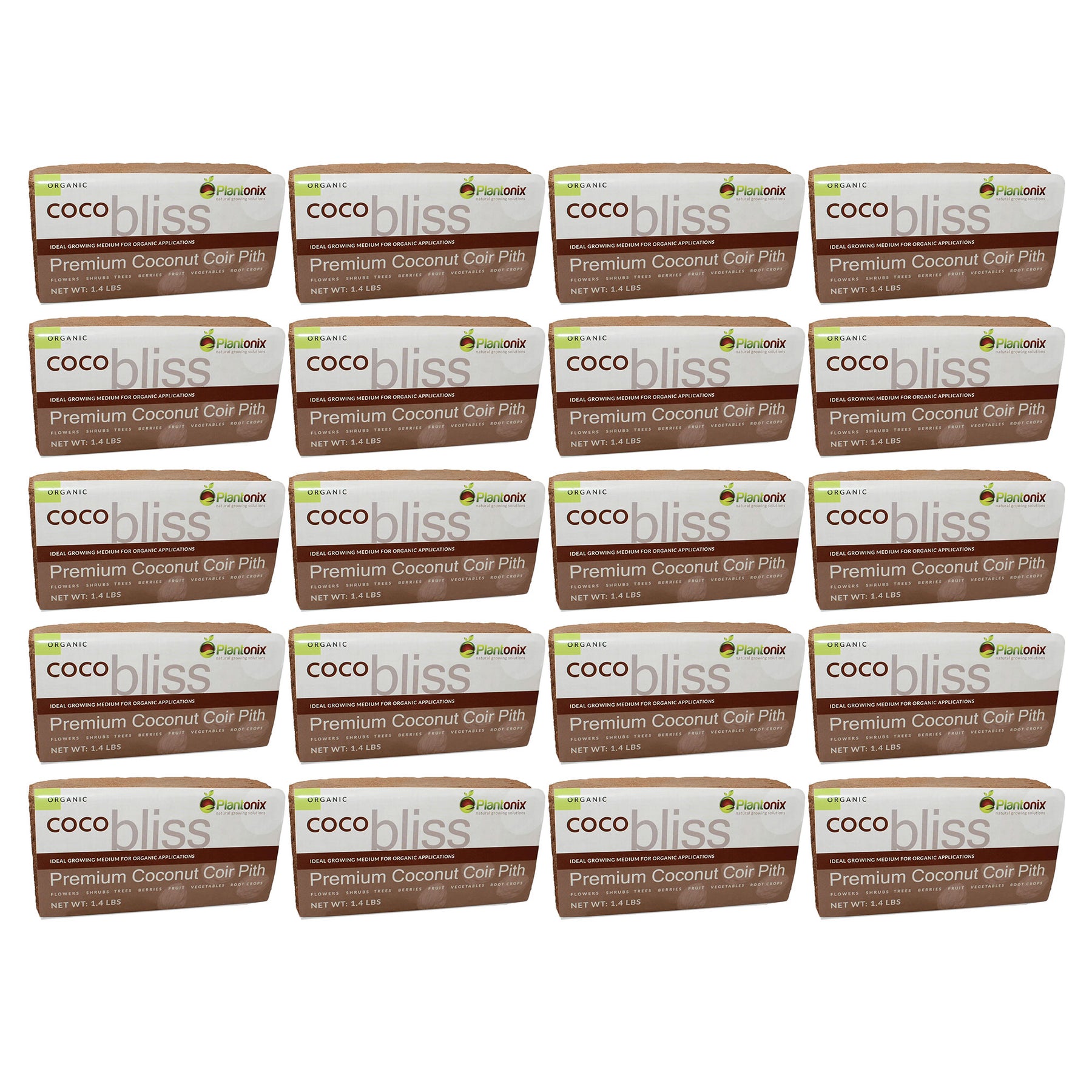 Plantonix Coco Bliss Premium Organic Coconut Coir Pith, 650GM Bricks (20 Pack)