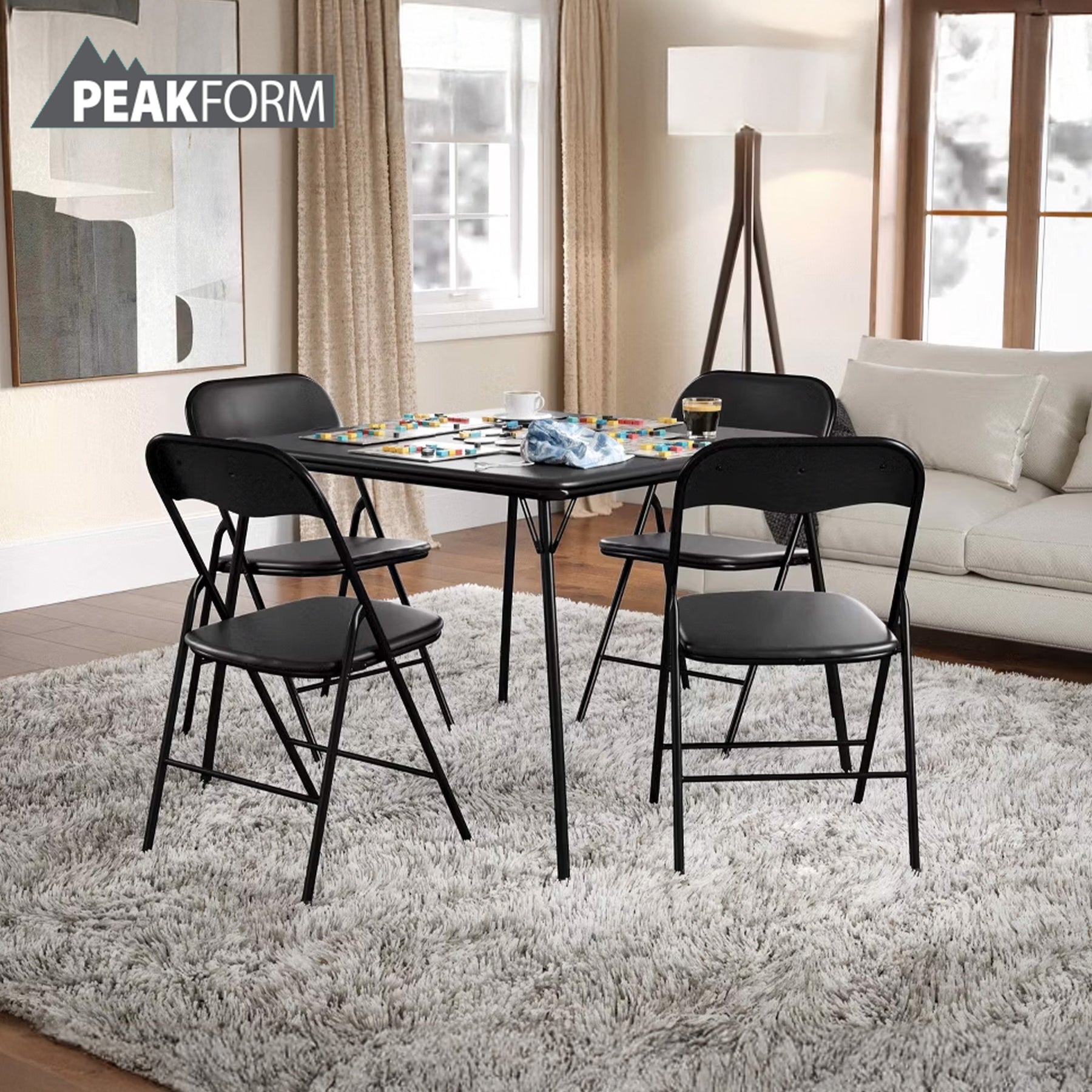 • 5-piece card table set with a folding card table and 4 chairs