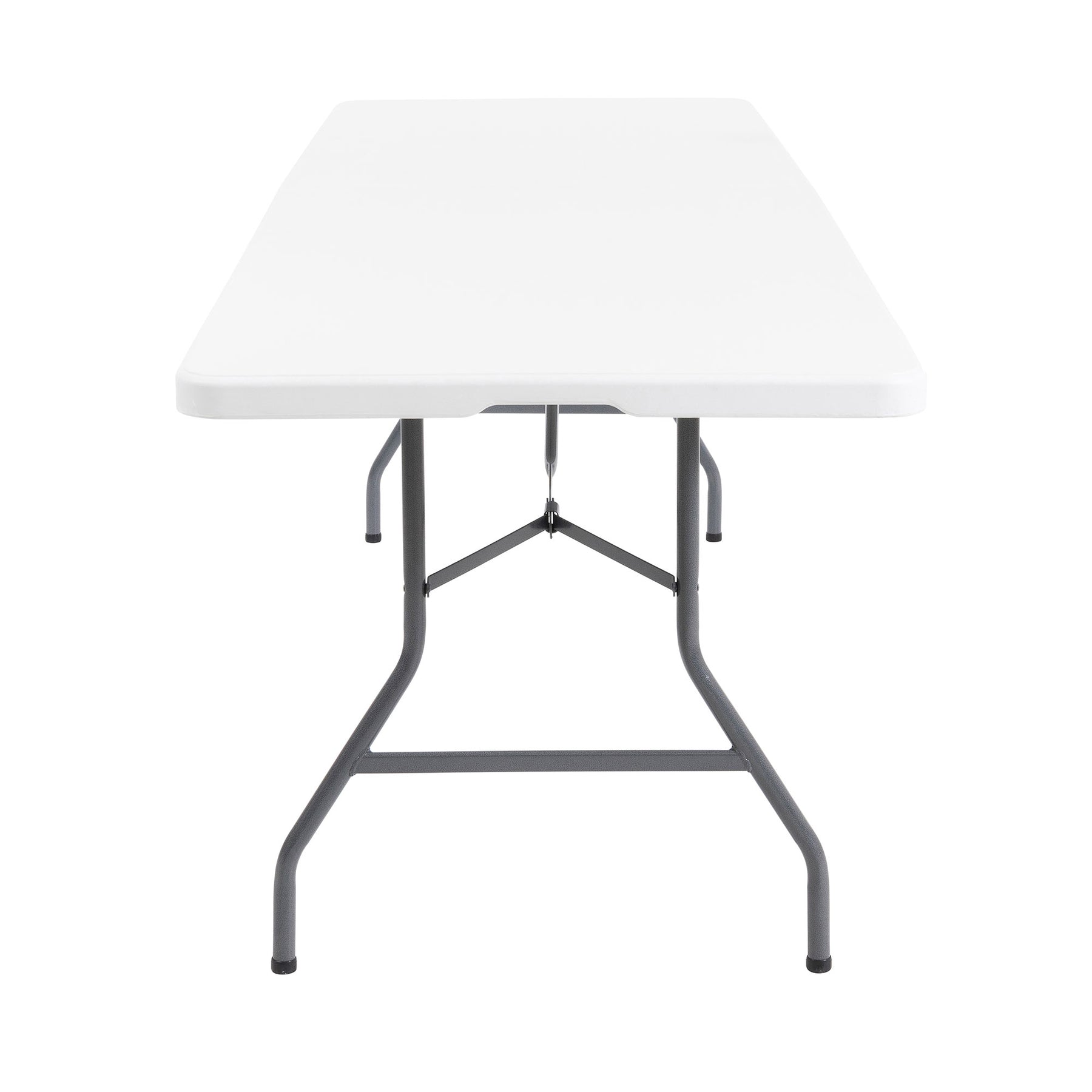 • Gather around this 8-foot folding table, great for outdoor dining or entertainment, family reunions, and parties, or as a work table in the basement or garage