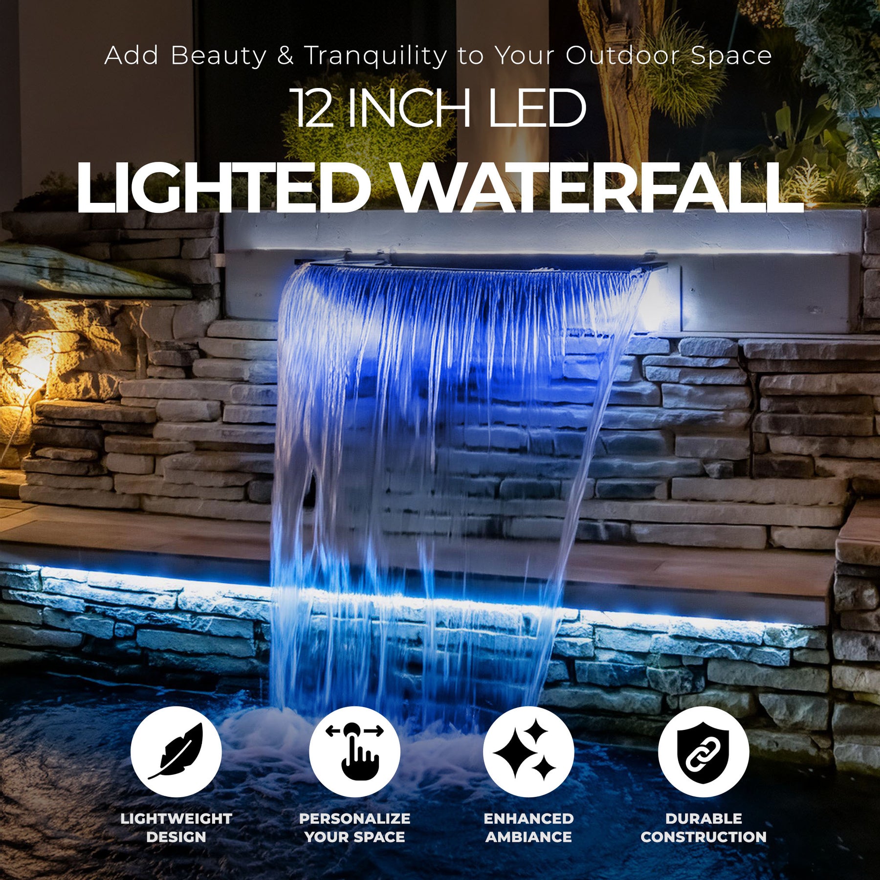 • Transform your outdoor space with the mesmerizing LED Lighted Waterfall Spillway (12 in.) from Pondmaster
