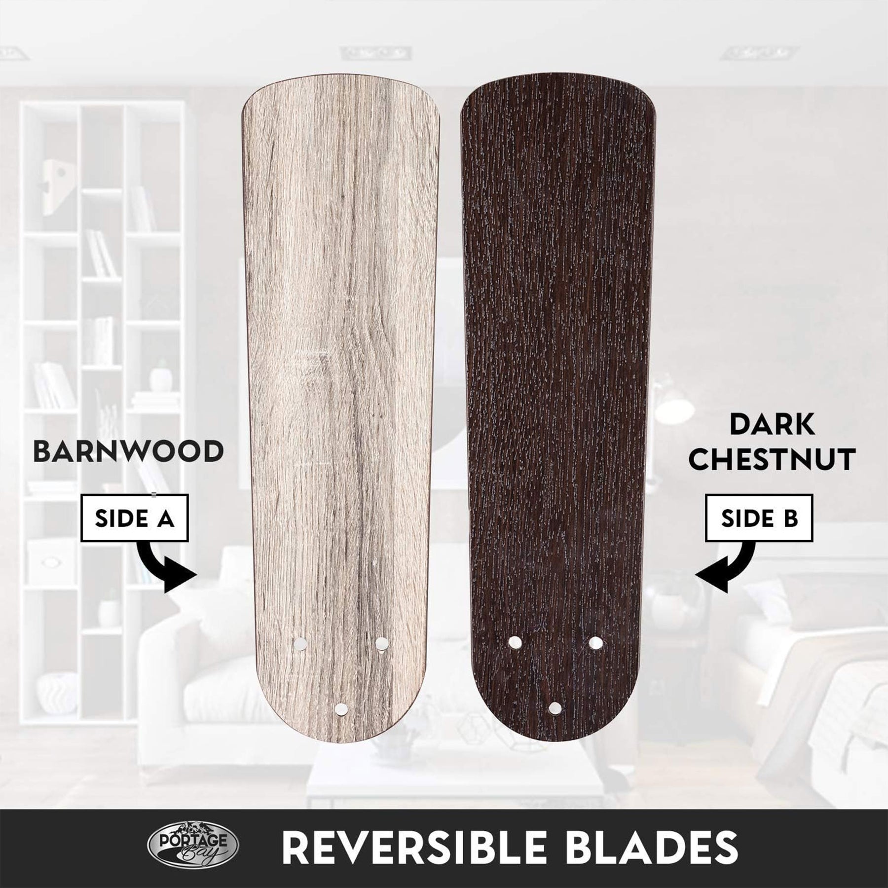 - Reversible blade with barnwood and dark chestnut ensures the ceiling fan will blend in with existing decor
