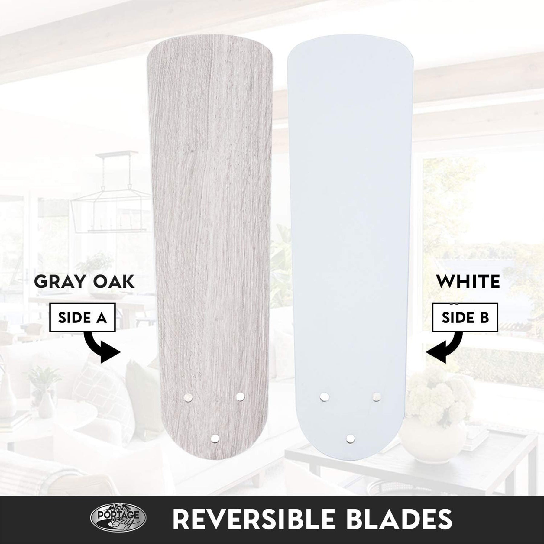- Reversible blade with gray oak and white ensures the ceiling fan will blend in with existing decor
