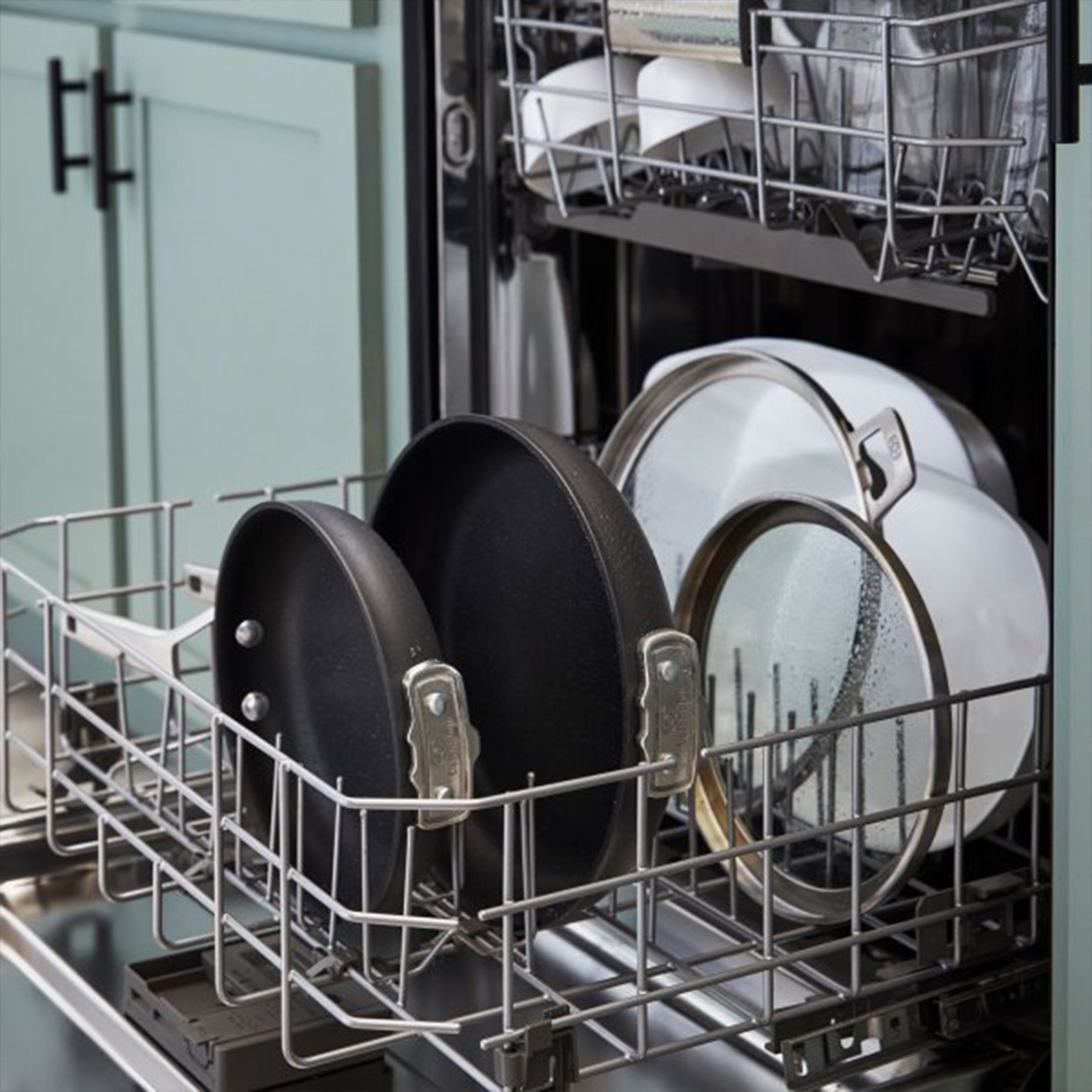 • 3-layer nonstick interior is made with some of the hardest minerals, and the hard-anodized exterior is dishwasher-safe for easy cleanup