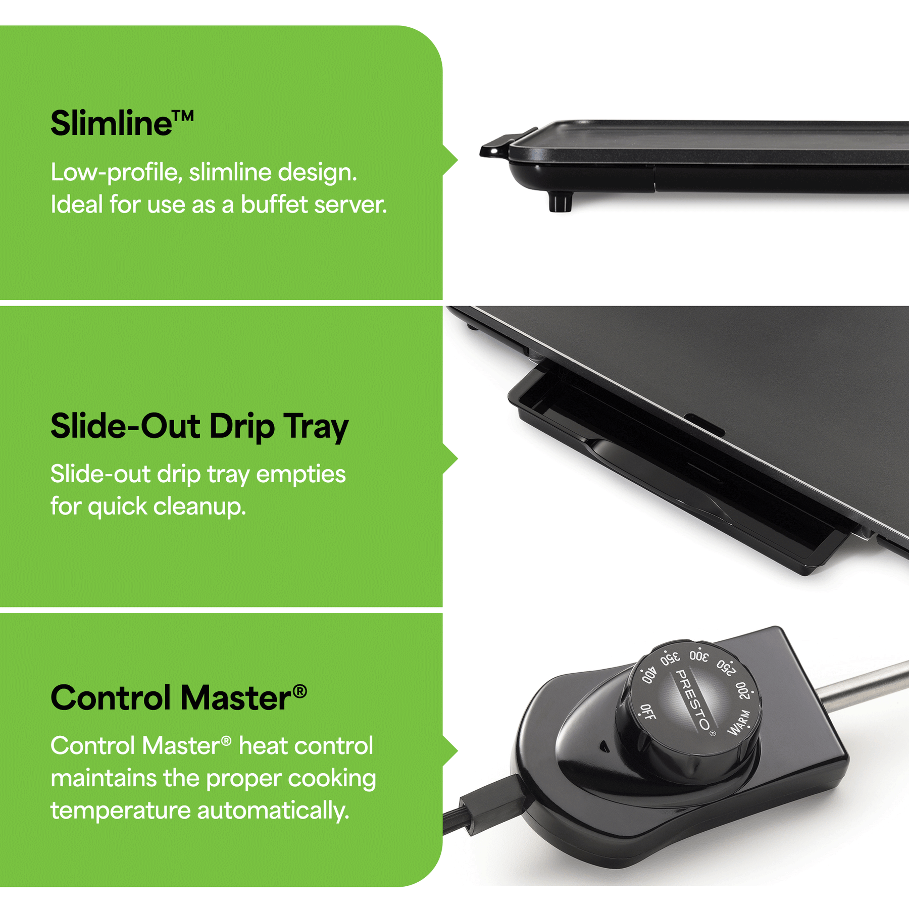 • Prepare meals for the entire family on this extra-large electric griddle with ample cooking space