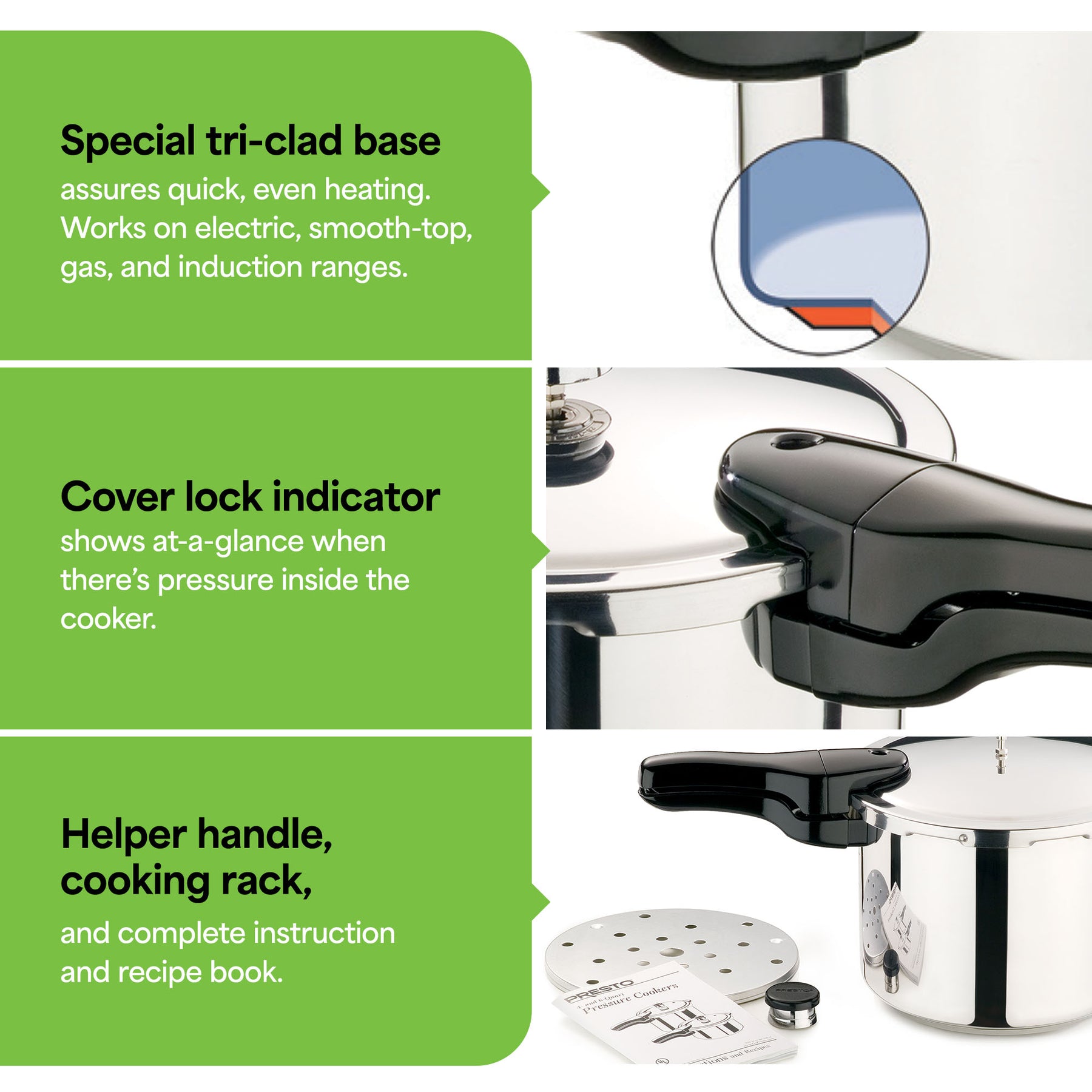 Presto 6qt Stainless Steel Pressure Cooker, Tri Clad Base, Silver (Open Box)