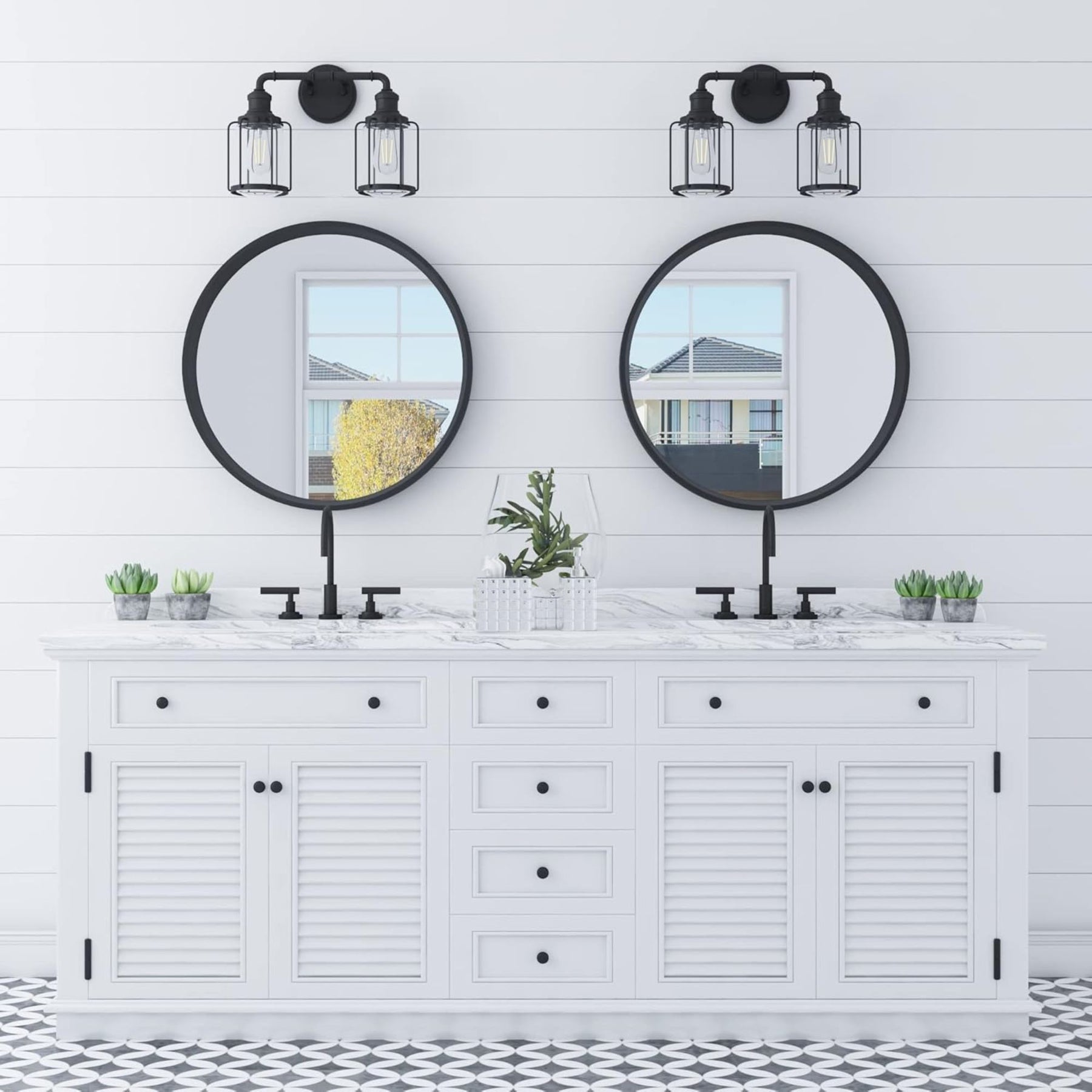 Add striking style and practical illumination to your home with the Prominence Home Lincoln Woods 2-Light Industrial Bathroom Vanity Lights. Designed with a bold black industrial finish and accented by mixed media elements, these fixtures deliver vintage charm with modern edge, perfect for kitchens, dining areas, or any indoor space that craves a statement piece.