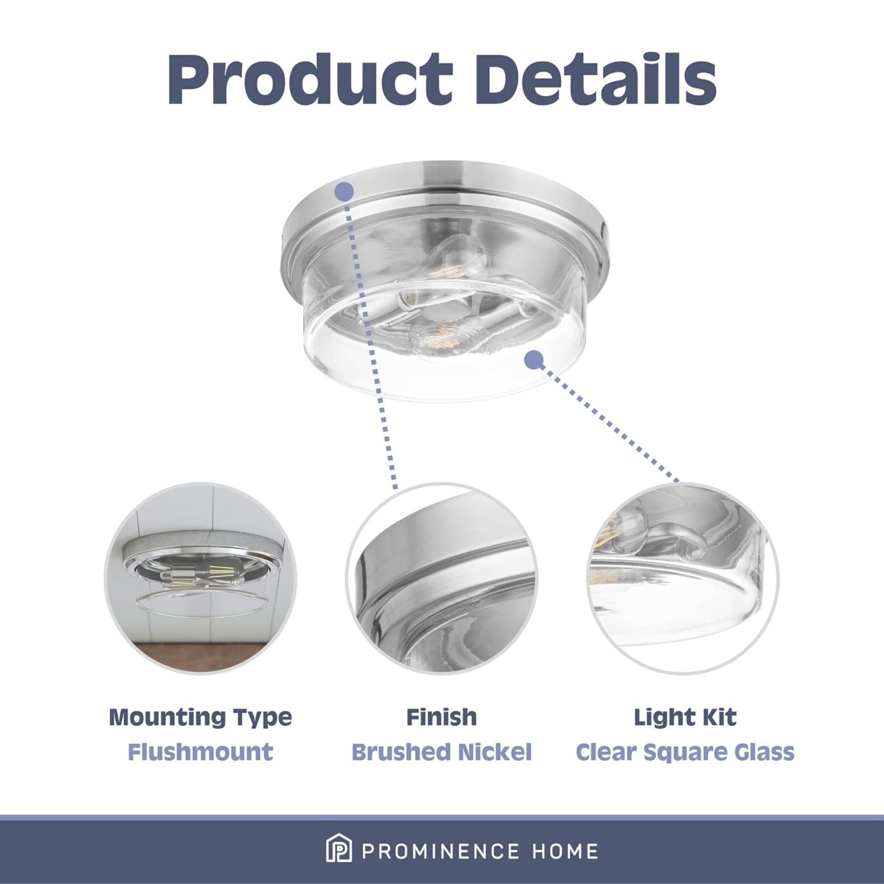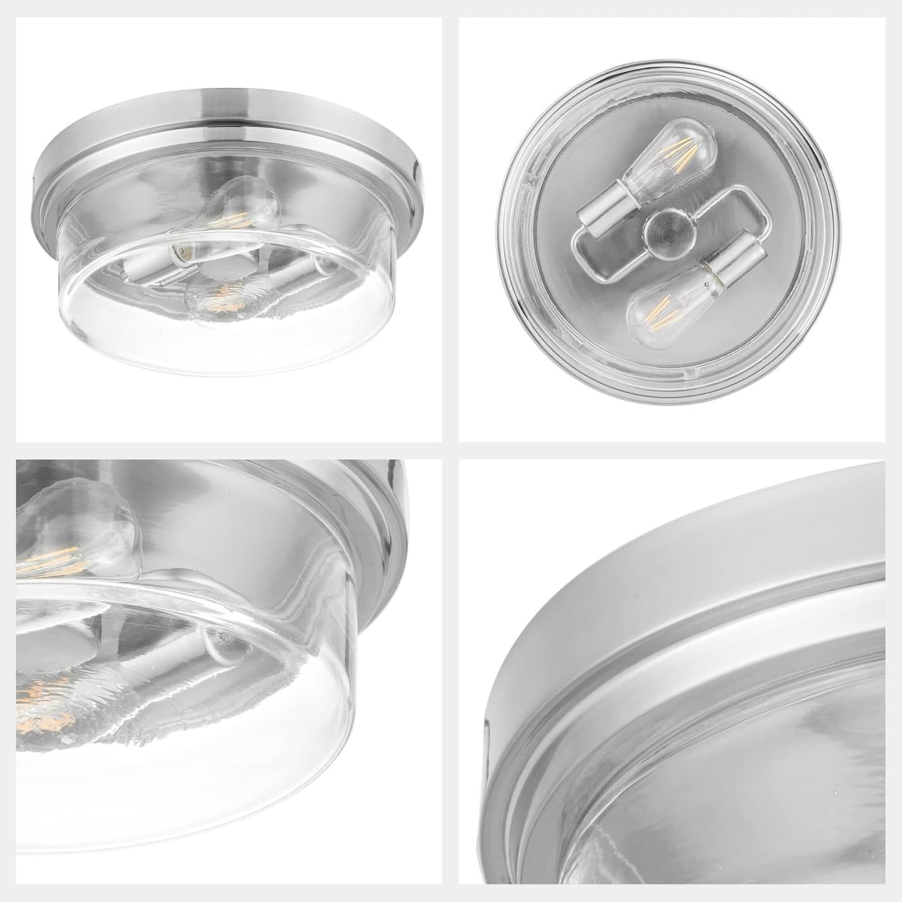 Prominence Home 2 Pack Madalyn 13" Ceiling Light Clear Drum Glass Brushed Nickel