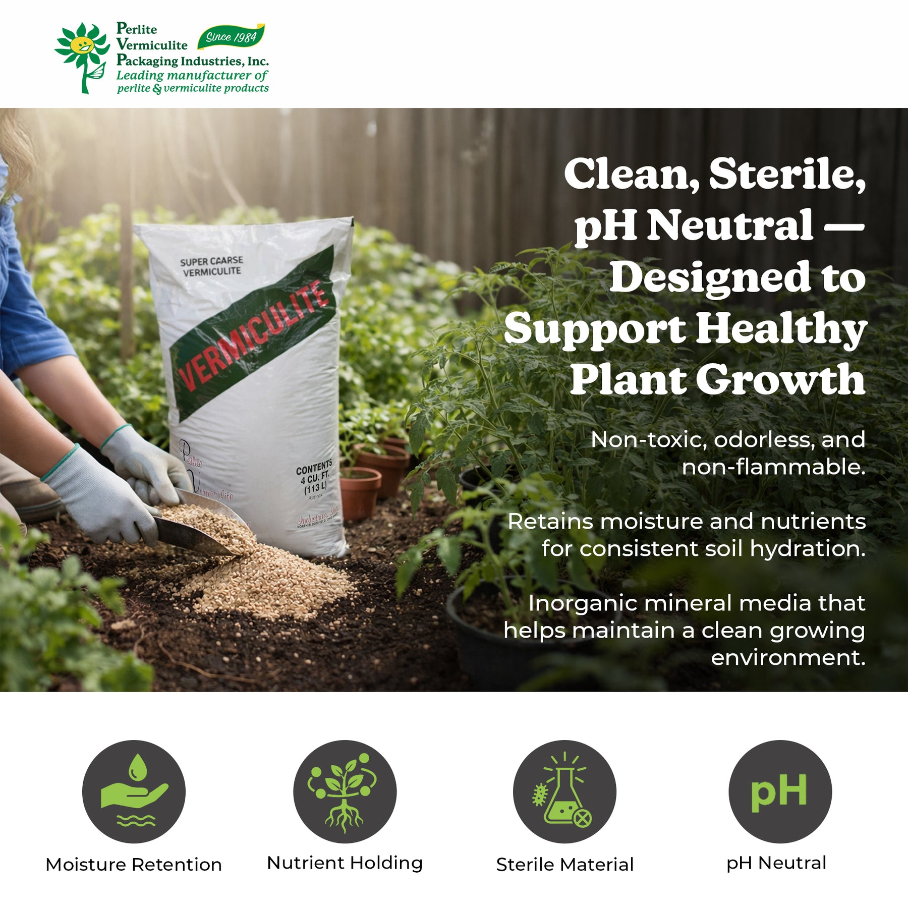 - Clean, odorless, non-toxic, and pH neutral, vermiculite will not rot, ideal for gardening, packaging, and industrial use