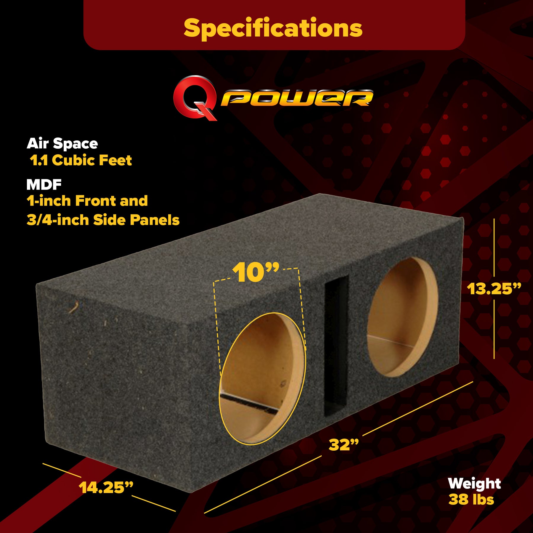 If you're looking for a rugged, well-built, and great-sounding subwoofer box, the Q Power 2 Hole 10-Inch Vented Enclosure delivers the quality your system deserves. It’s the perfect combination of power, performance, and durability—all in one box.
