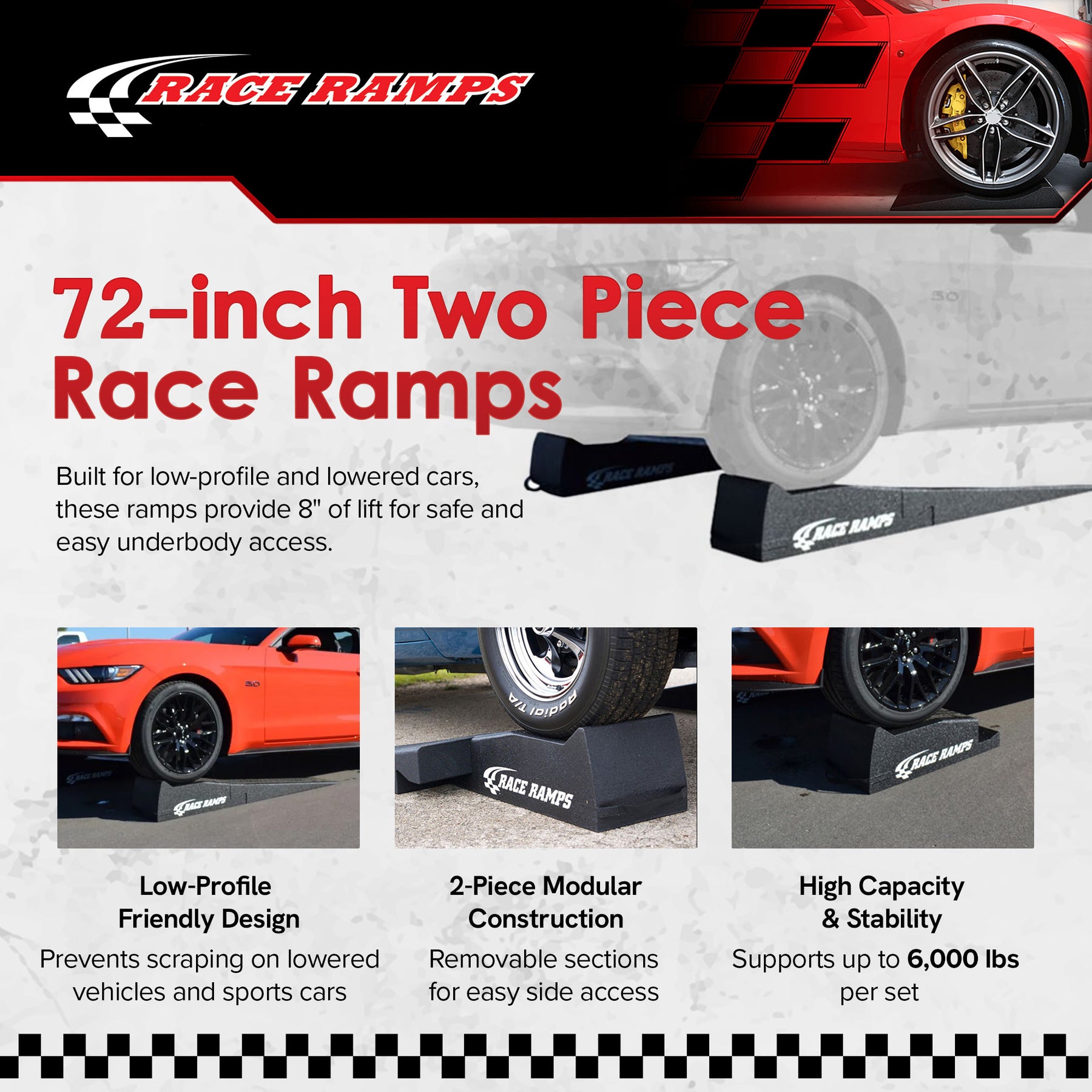 • Perfect for low-profile cars, with a 10.75-degree incline for easy access