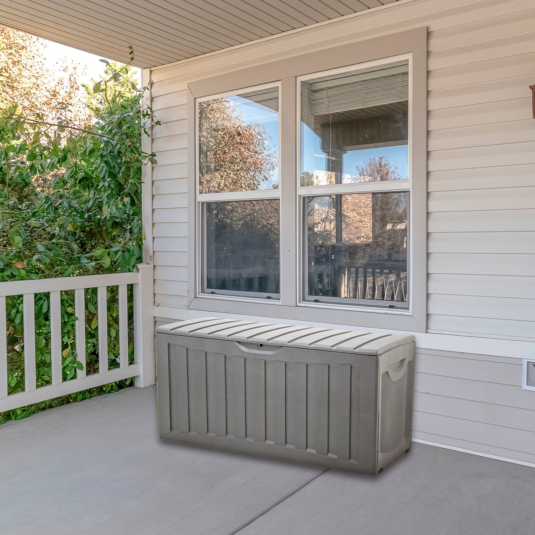 • Heavy-duty storage box offers plenty of space for holding patio furniture cushions, toys, pool accessories, and beach towels