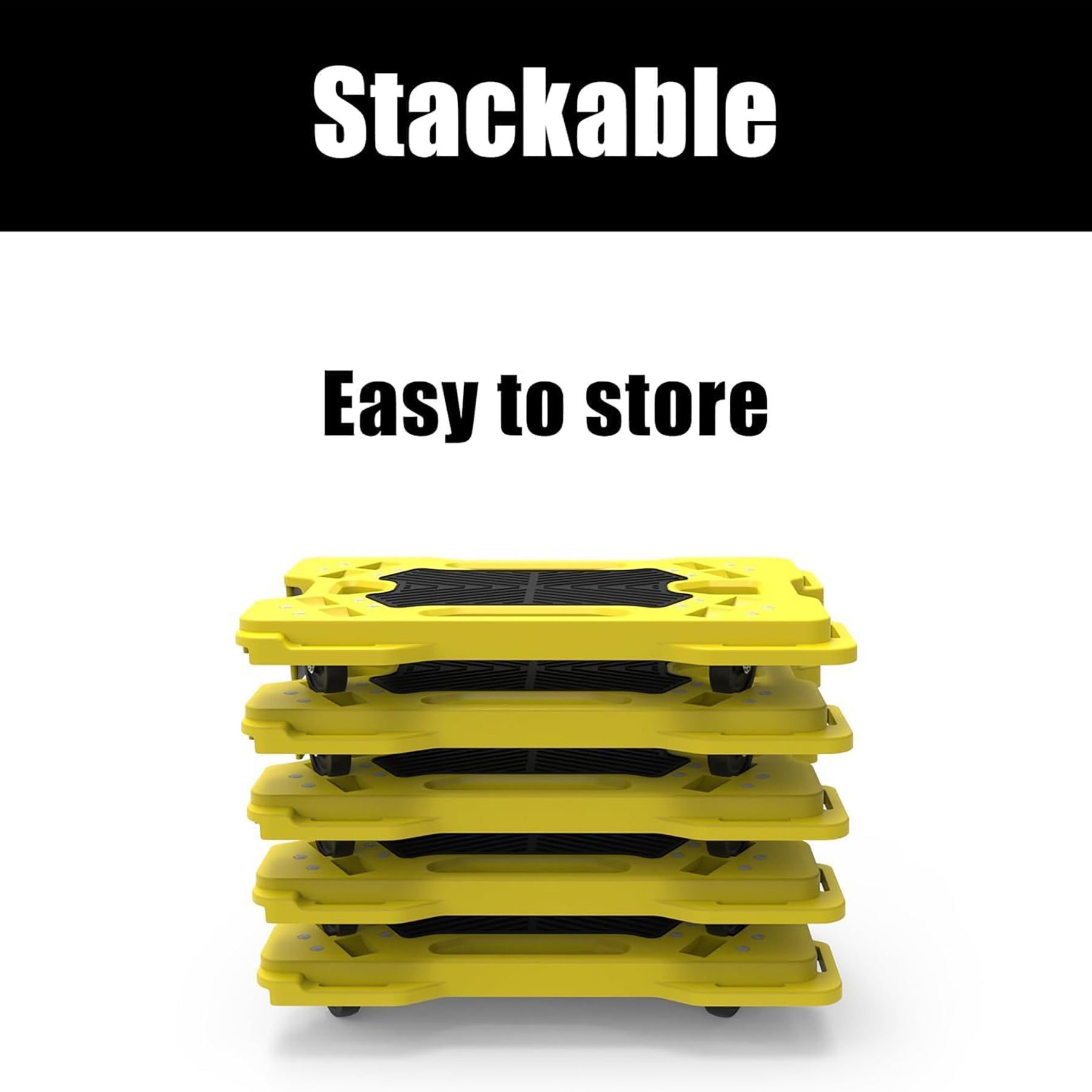 Ramtuff Connectable Moving Dolly, Sturdy Plastic Cart w/ Wheels, Yellow, 4 Pack