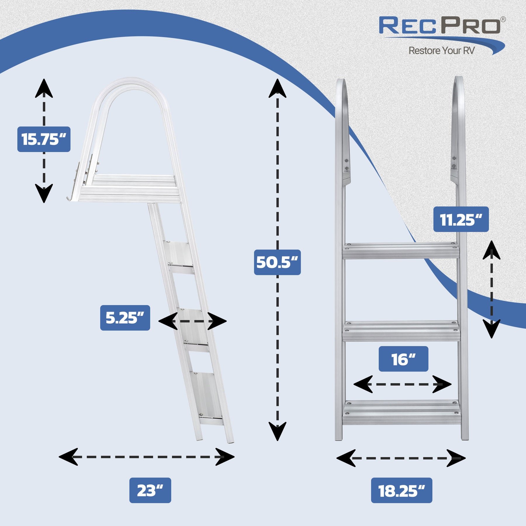 • Features tall aluminum handrails that offer additional support, making boarding easier and more comfortable