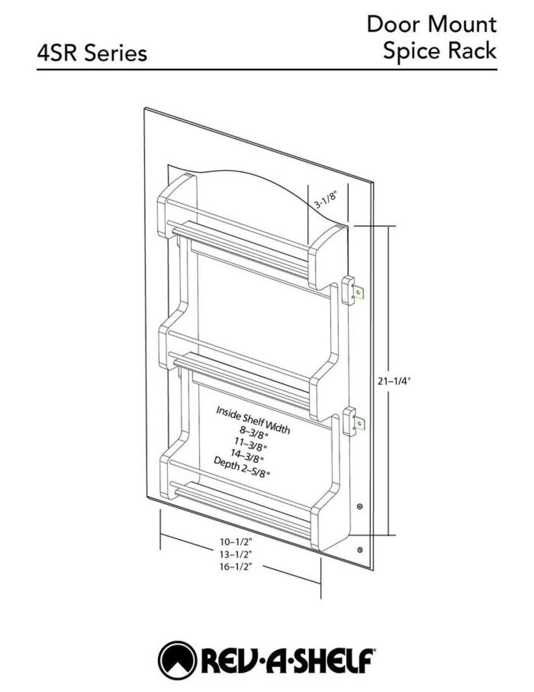 Rev-A-Shelf 15" Kitchen Cabinet Door Mounted 3-Shelf Storage Spice Rack, 4SR-15