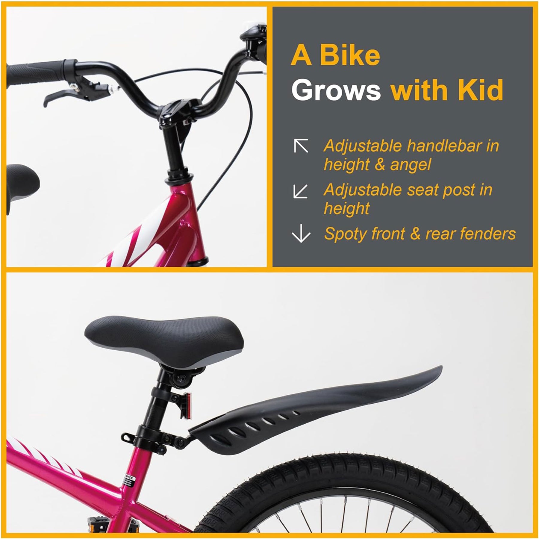 RoyalBaby Freestyle 20" Kids Bicycle with Kickstand and Water Bottle, Fuchsia