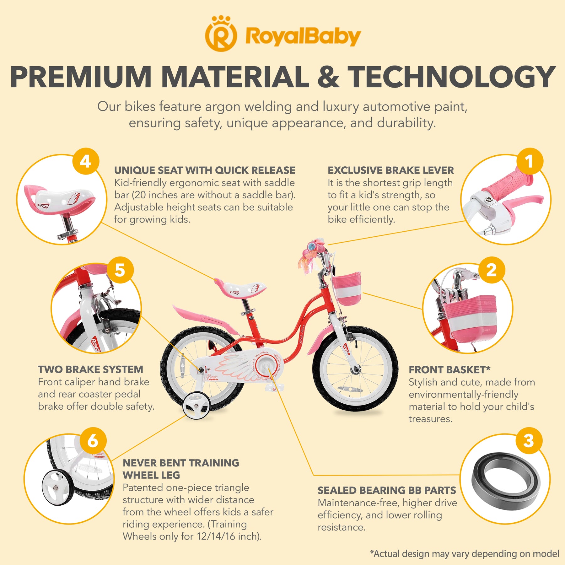RoyalBaby Princess Girl Kids Bicycle 14 Inch with Training Wheels (Open Box)