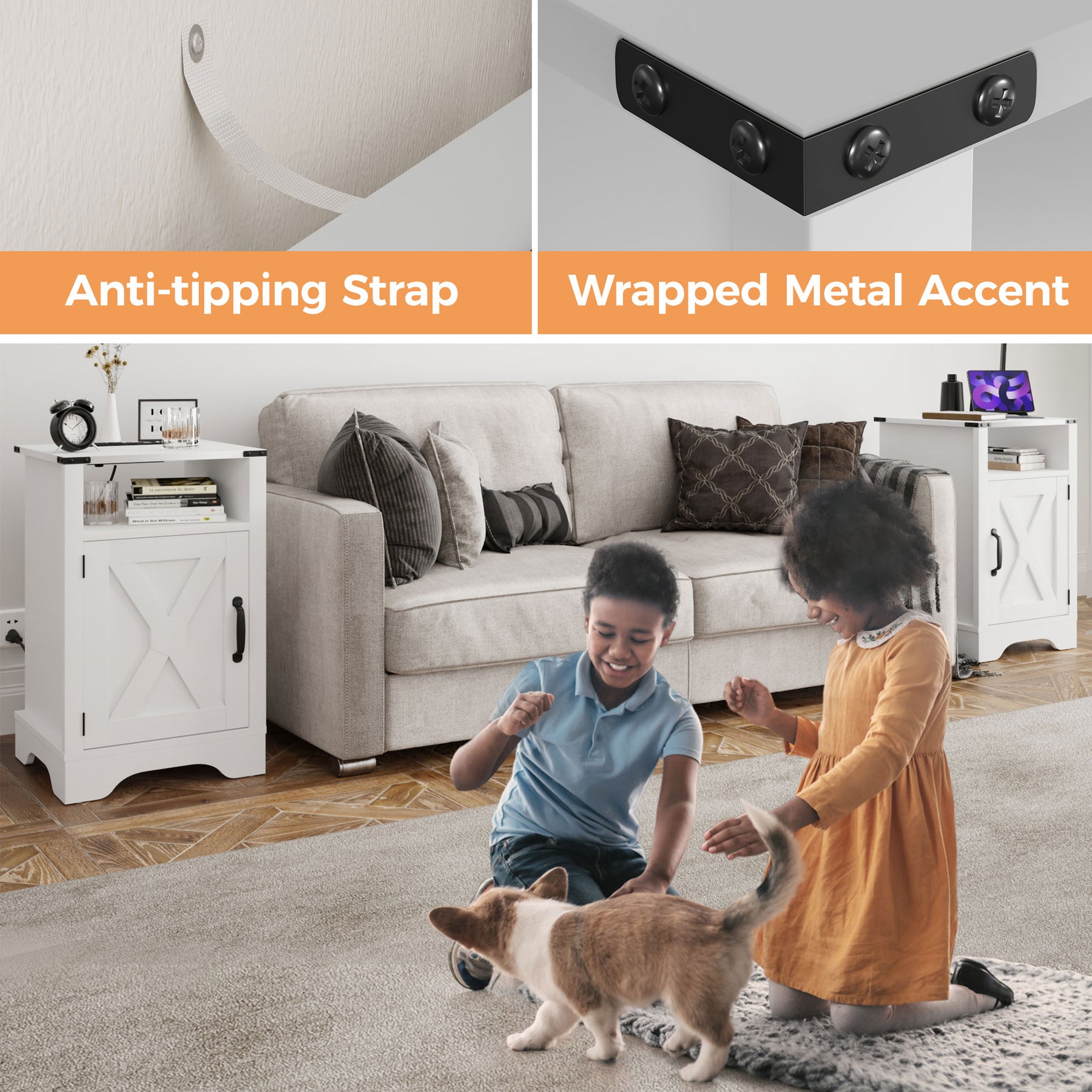 RoyalCraft Farmhouse Nightstand w/Charging Station, White (Open Box)