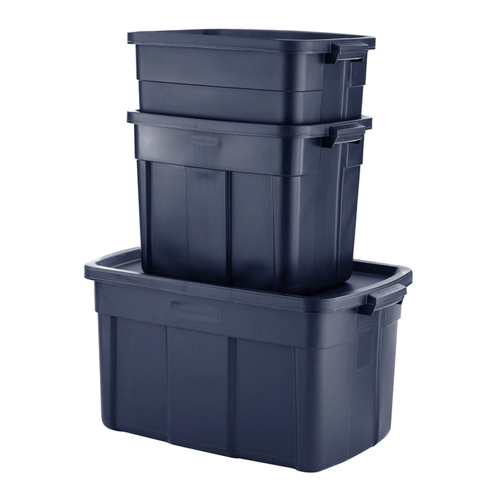 A versatile storage solution for use season after season, this 12-pack of Roughneck 10-Gallon Rugged Storage Totes from Rubbermaid is a smart choice.