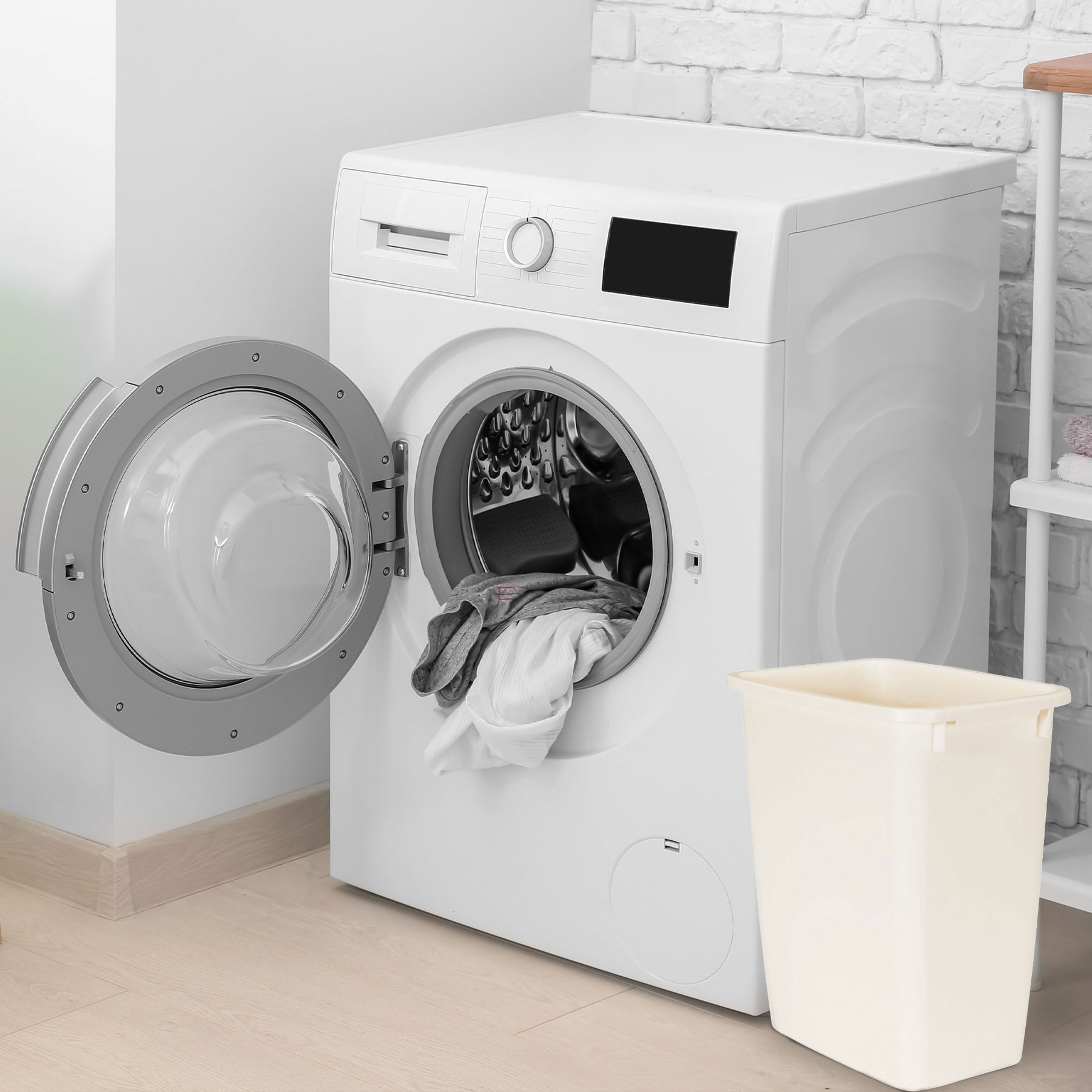 • Traditionally shaped trashcan is durable and lightweight