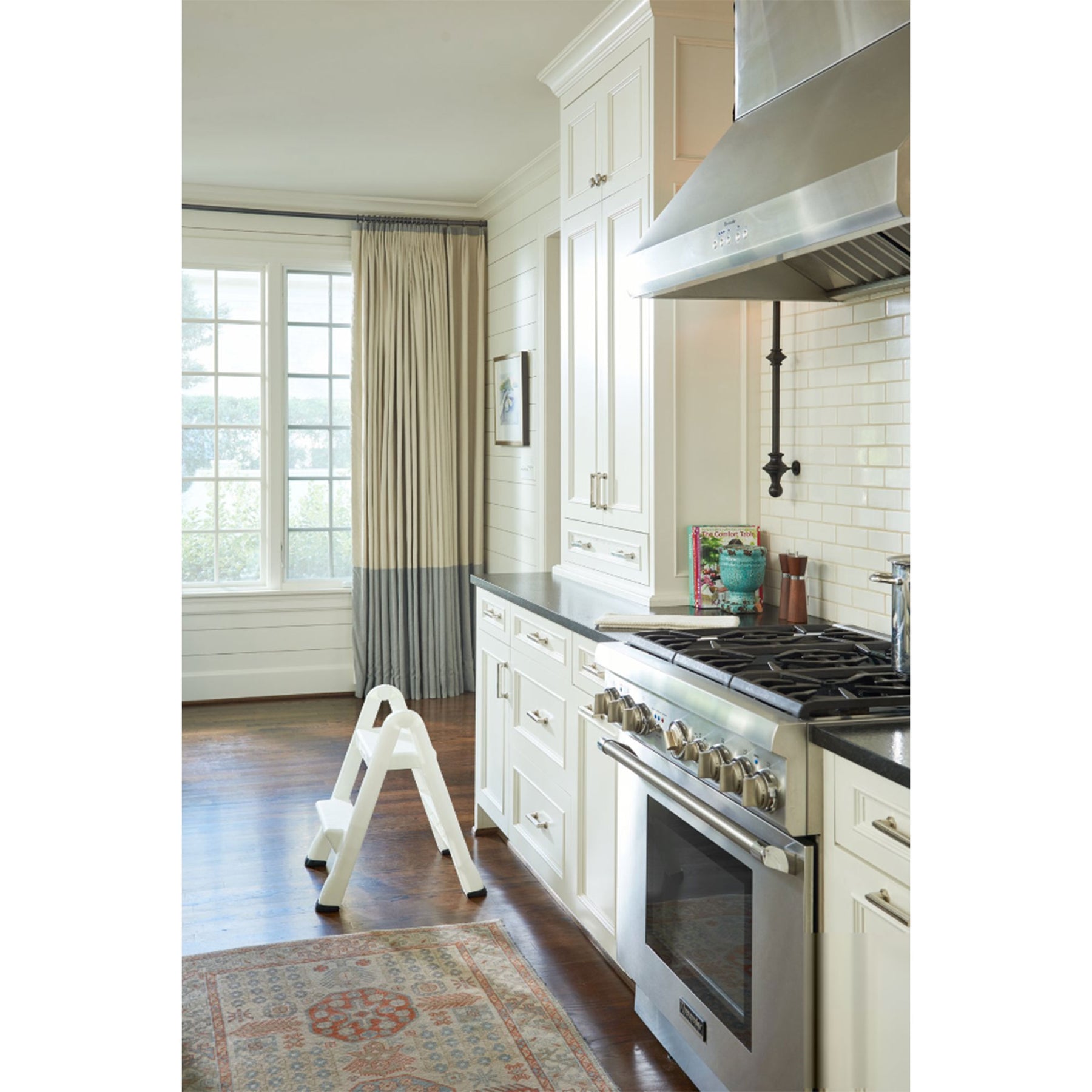• Folding step stool, great for getting the extra reach you need to access top cupboards