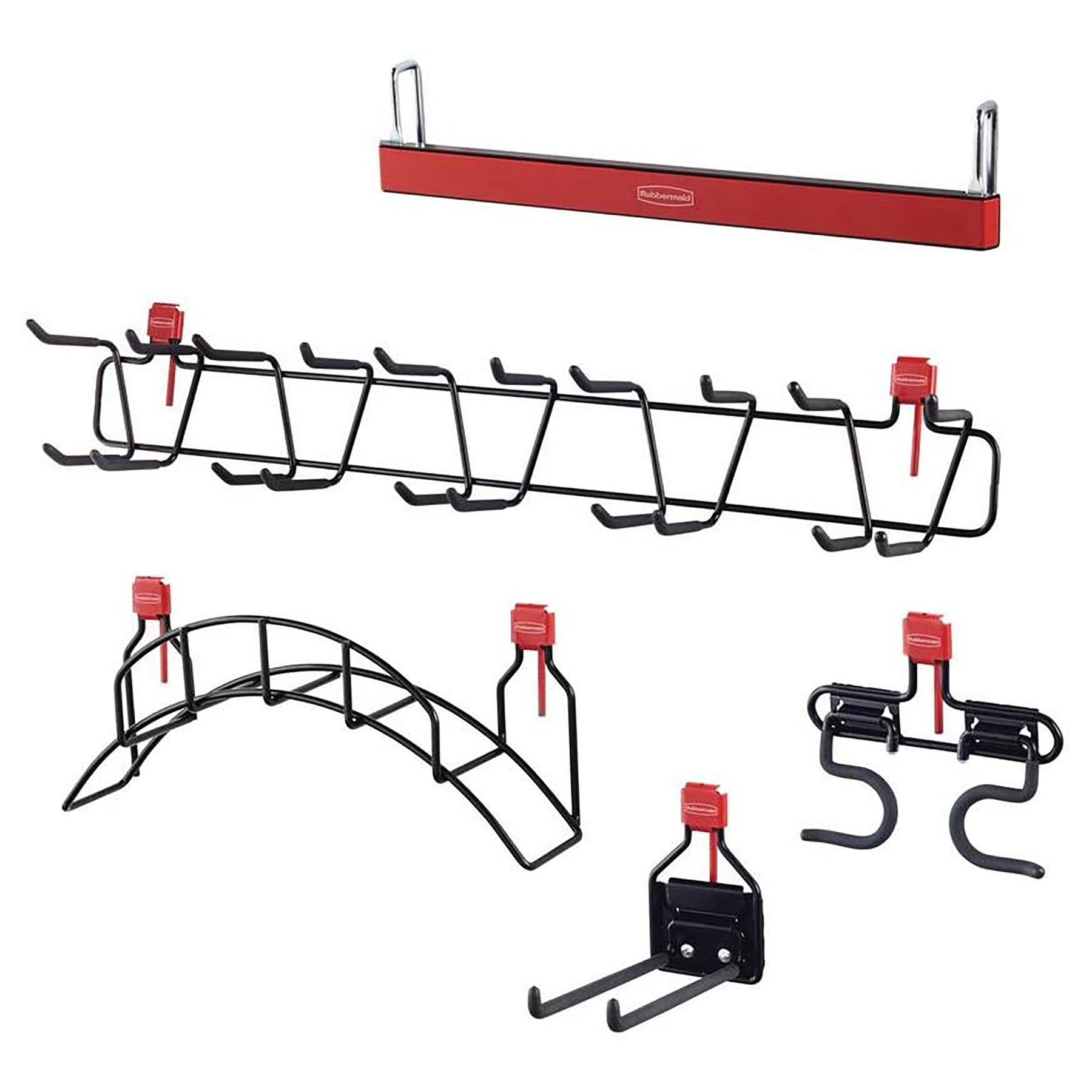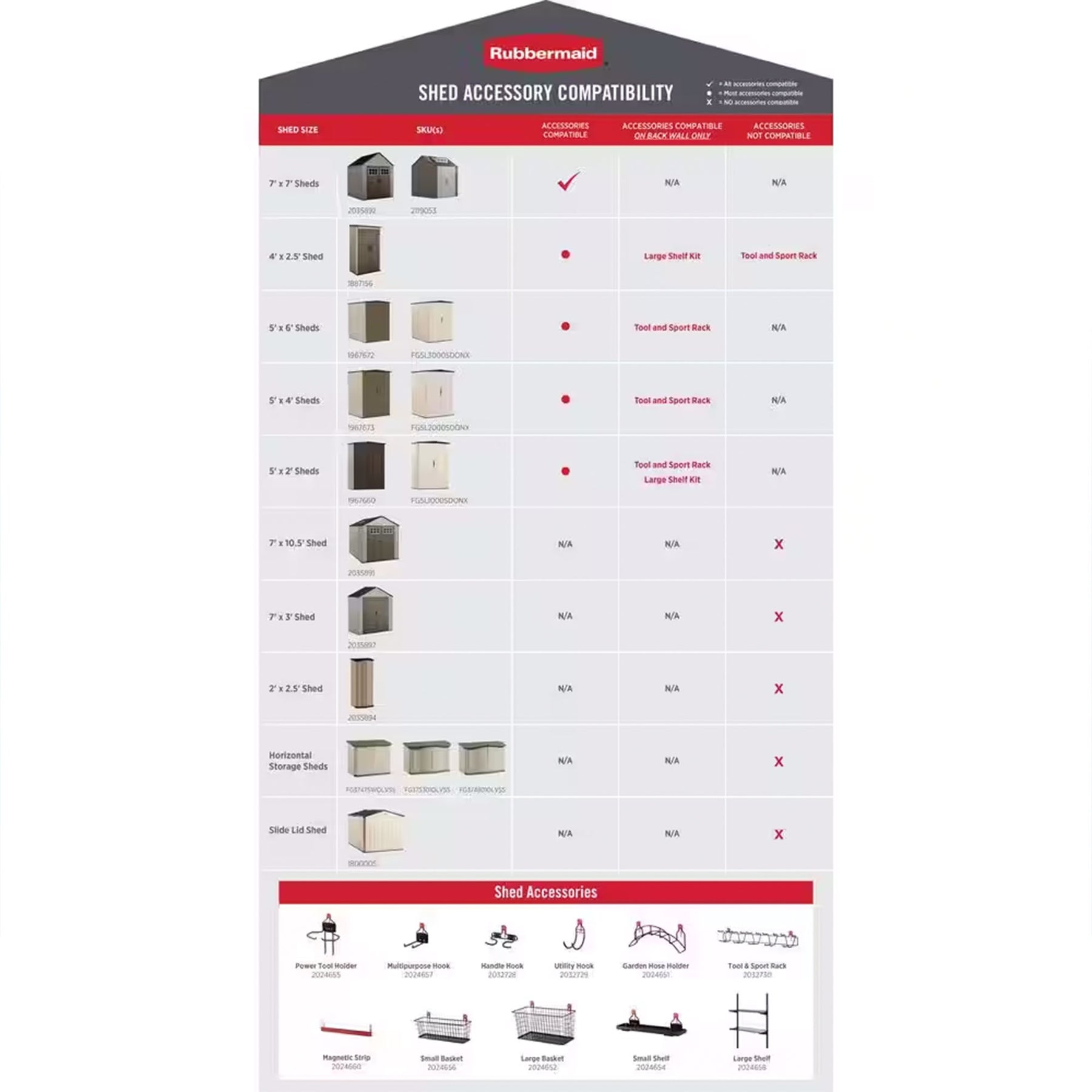 • Organizing 5 piece accessory kit that utilizes wall space in Rubbermaid sheds