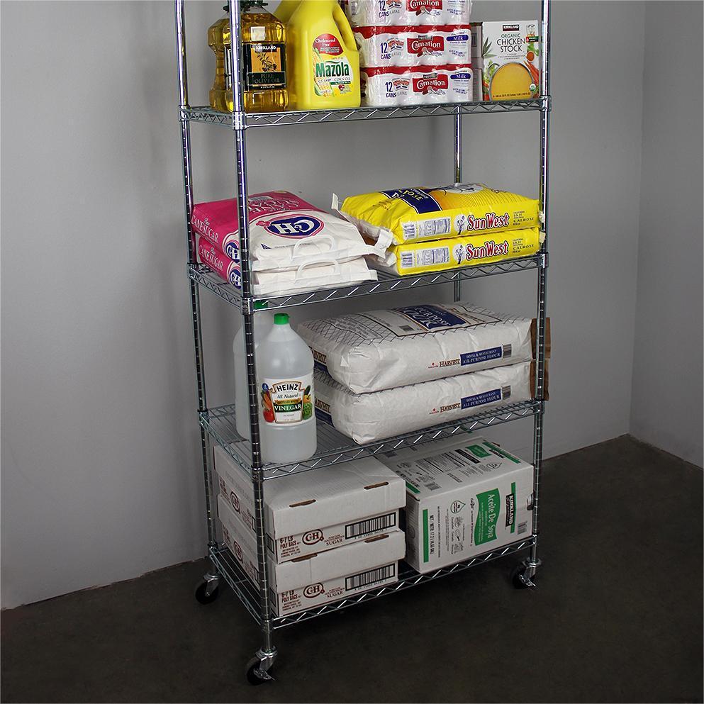 SafeRacks 18 x 36 x 72" 5 Tier Steel Wire Storage Shelving Rack w/Wheels, Silver