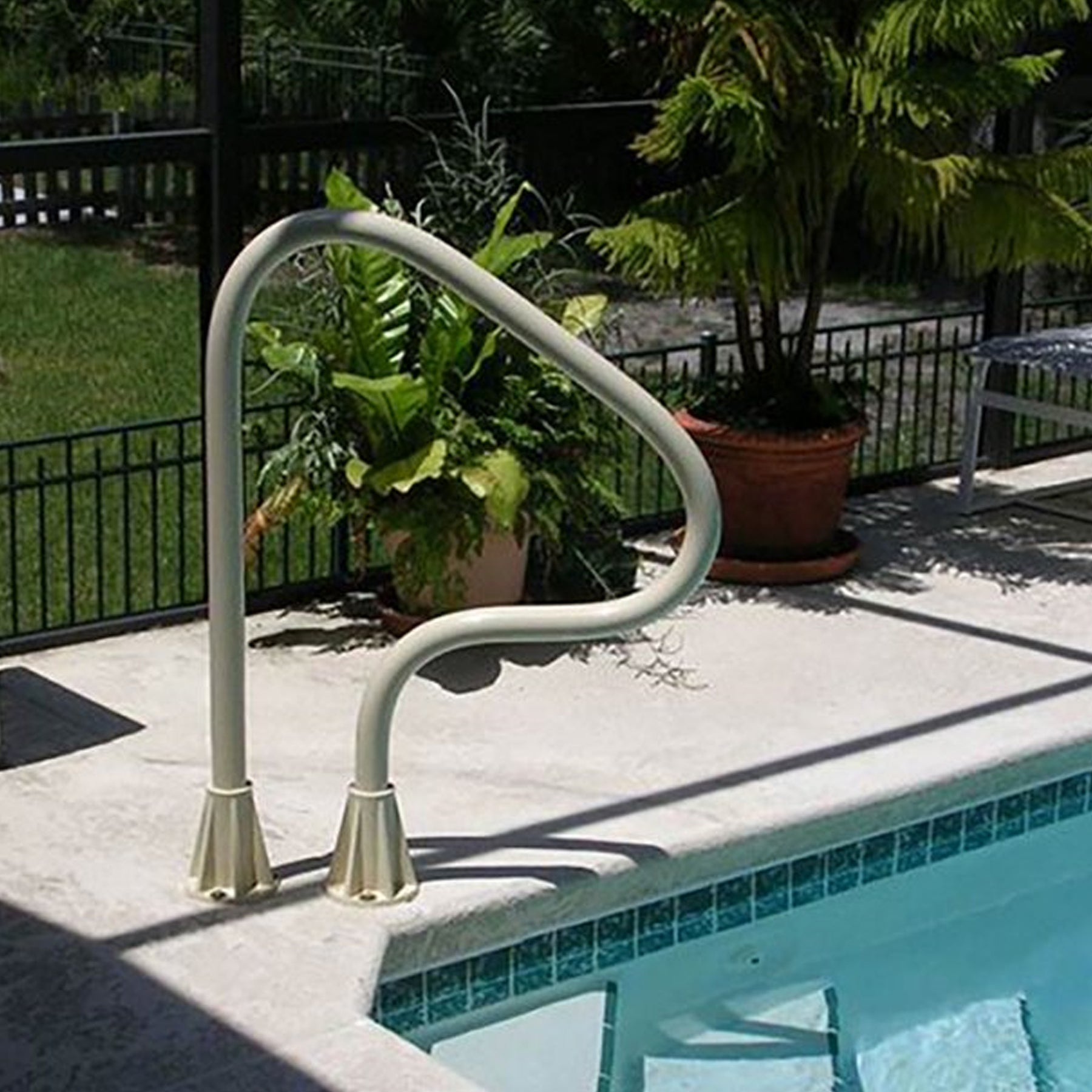 Suitable for in-ground pools, this Figure 4 safety rail is constructed of a durable polymer with specially formulated compounds to ensure longevity and unparalleled resistance to the elements. The reinforced, encapsulated steel interior provides superior strength and durability while the high-impact polymer exterior ensures the outdoor safety rail is unaffected by pool chemicals, salt, and sun, and remains cooler to the touch. For added convenience, no grounding or bonding is required. This particular model of handrail features 3 bends for multiple options when entering or exiting your outdoor pool.