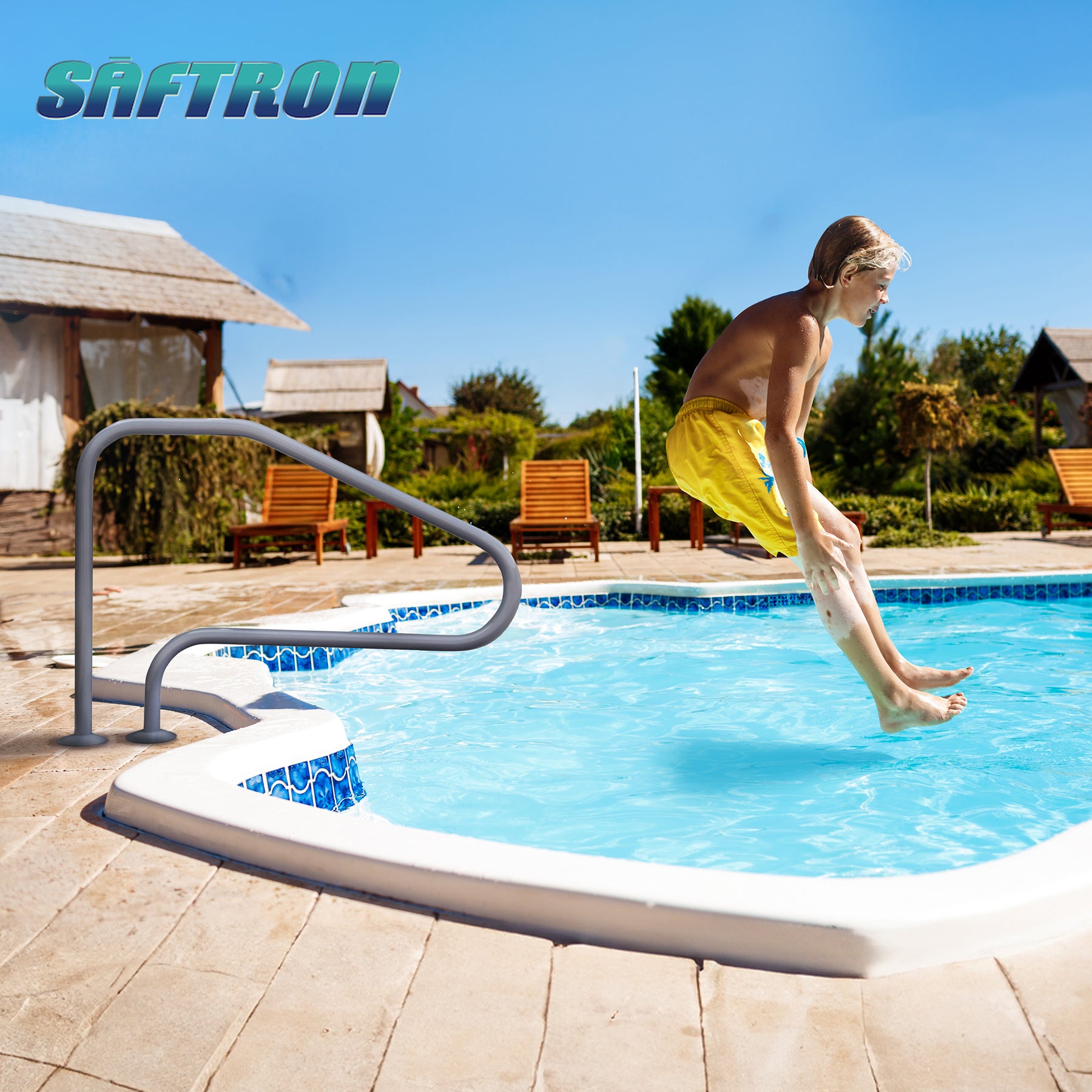 Whether you're splashing or relaxing in your pool, you've got a reliable way of entry and exiting with the Saftron 4-Bend Return to Deck Rail.