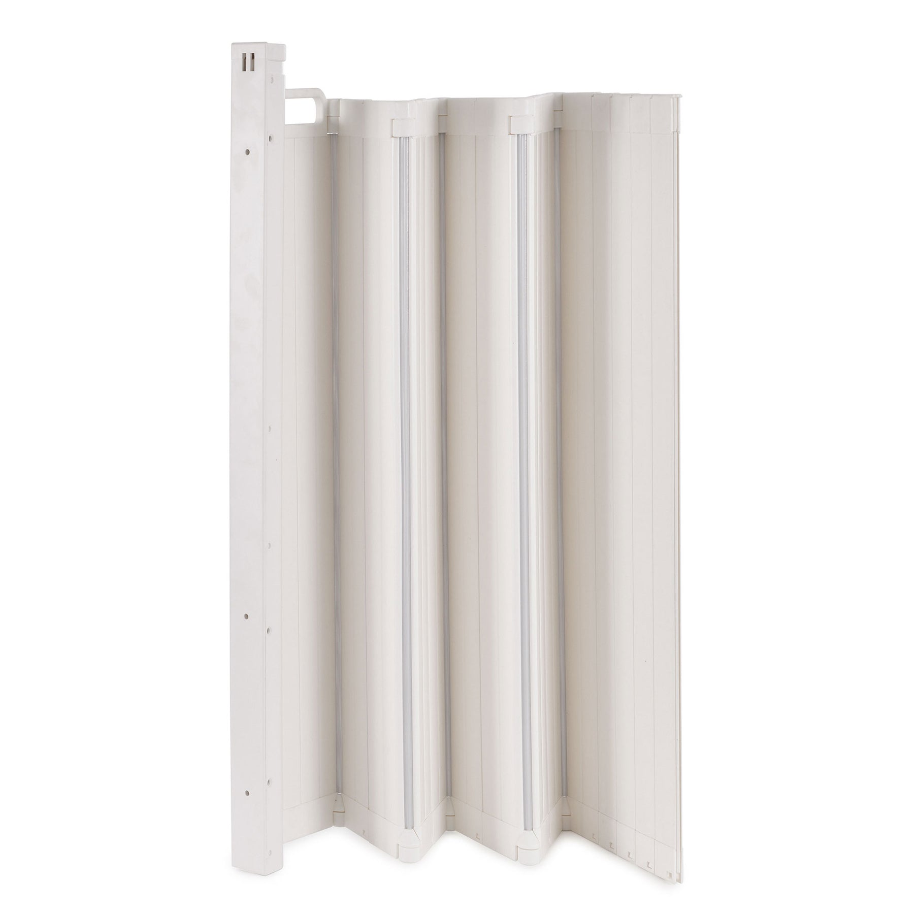 • Automatically retracts, folding back on itself when opened, and taking up almost no space once fully retracted