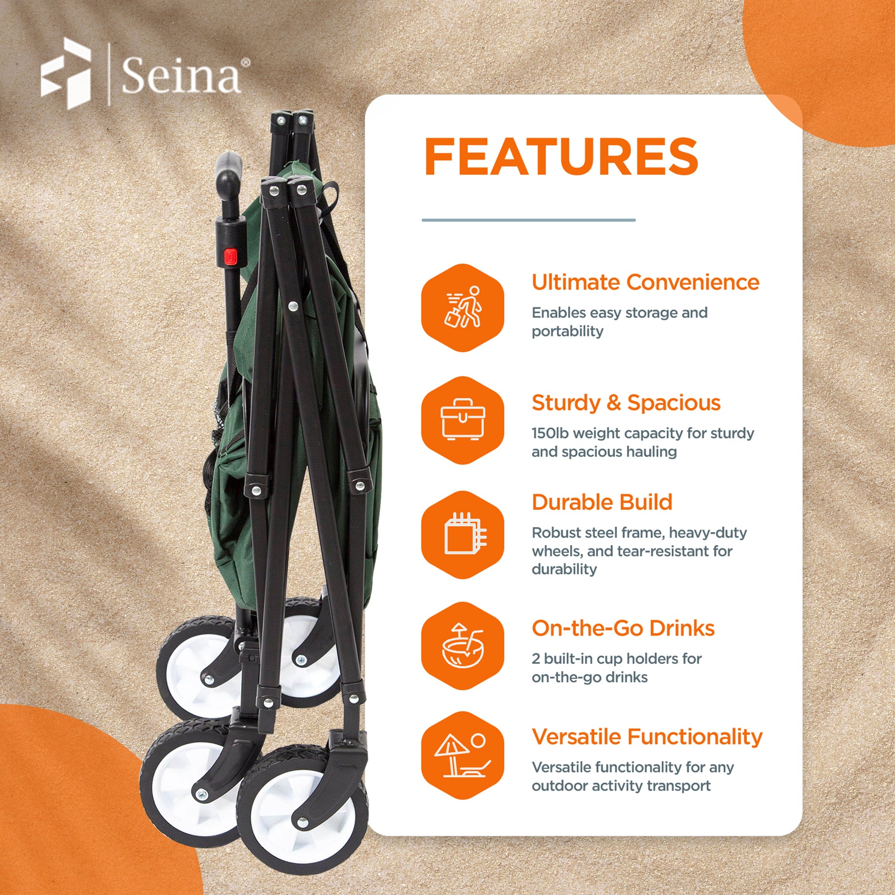 Seina Heavy Duty Compact Folding 150 Pound Capacity Outdoor Utility Cart, Green