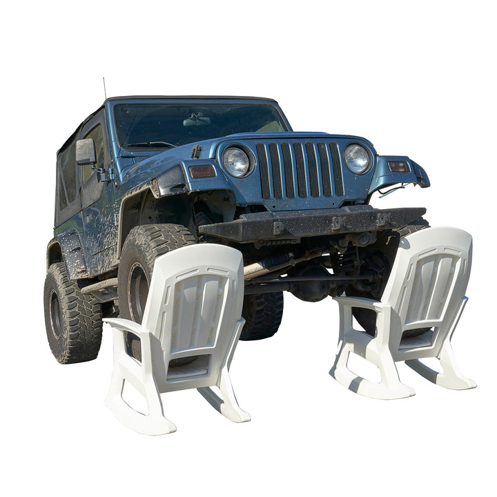 These large 19 by 19-inch rocking chairs with seat bases, large backrests, and big armrests support up to 600 pounds. The rugged dovetail-joint design breaks down into 4 pieces for easy storage or travel. Easy to assemble, you'll relax in minutes anywhere you take these rockers. Its rugged, high-density polyethylene plastic construction withstands any elements, resisting extreme moisture, temperature, and sunlight. These outdoor rocking chairs look great and are easy to clean. Assembled, these rockers measure 30 inches long, 21 inches wide, and 42 inches tall, making them a great chair to sit on and greet friends and neighbors on your porch.