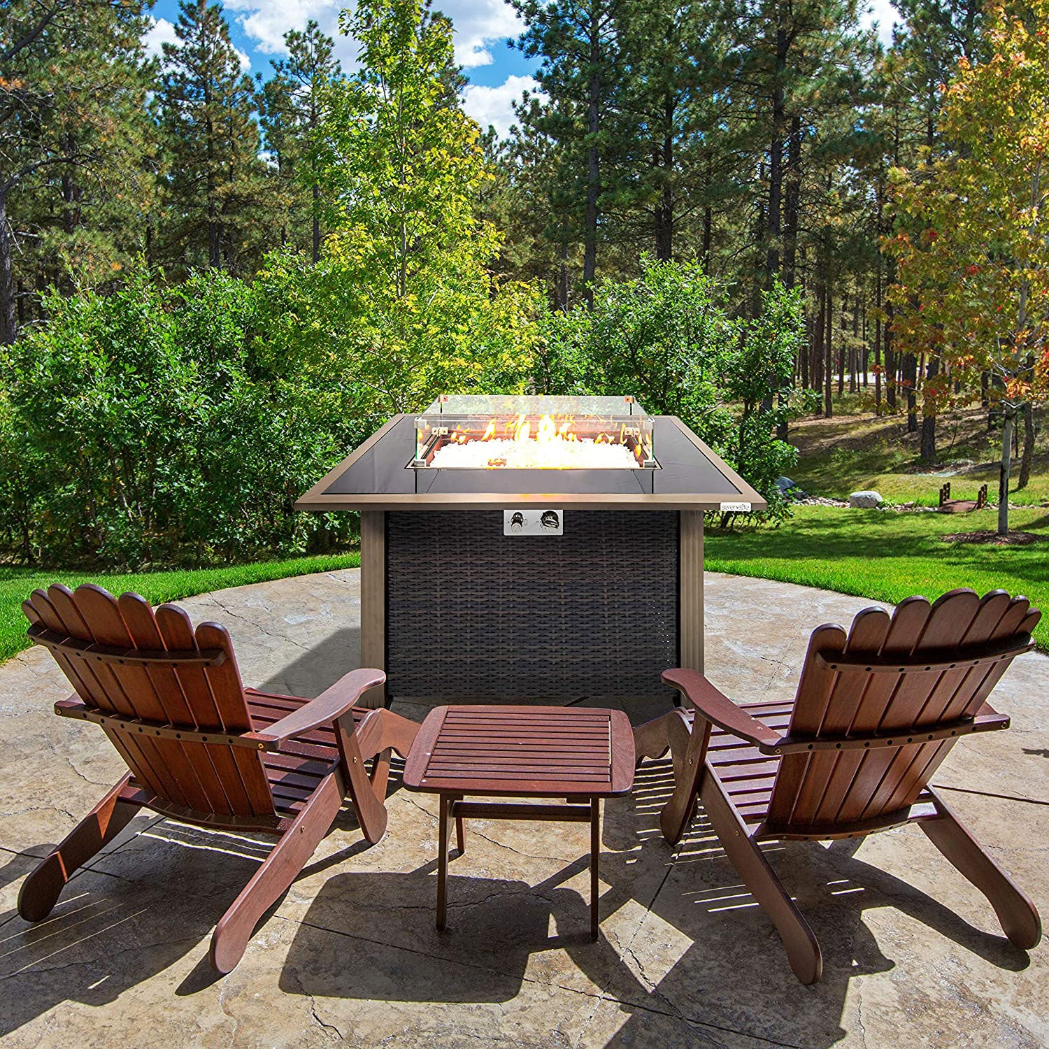Serenelife Rattan Patio Propane Fire Pit Table with Glass Guard (For Parts)