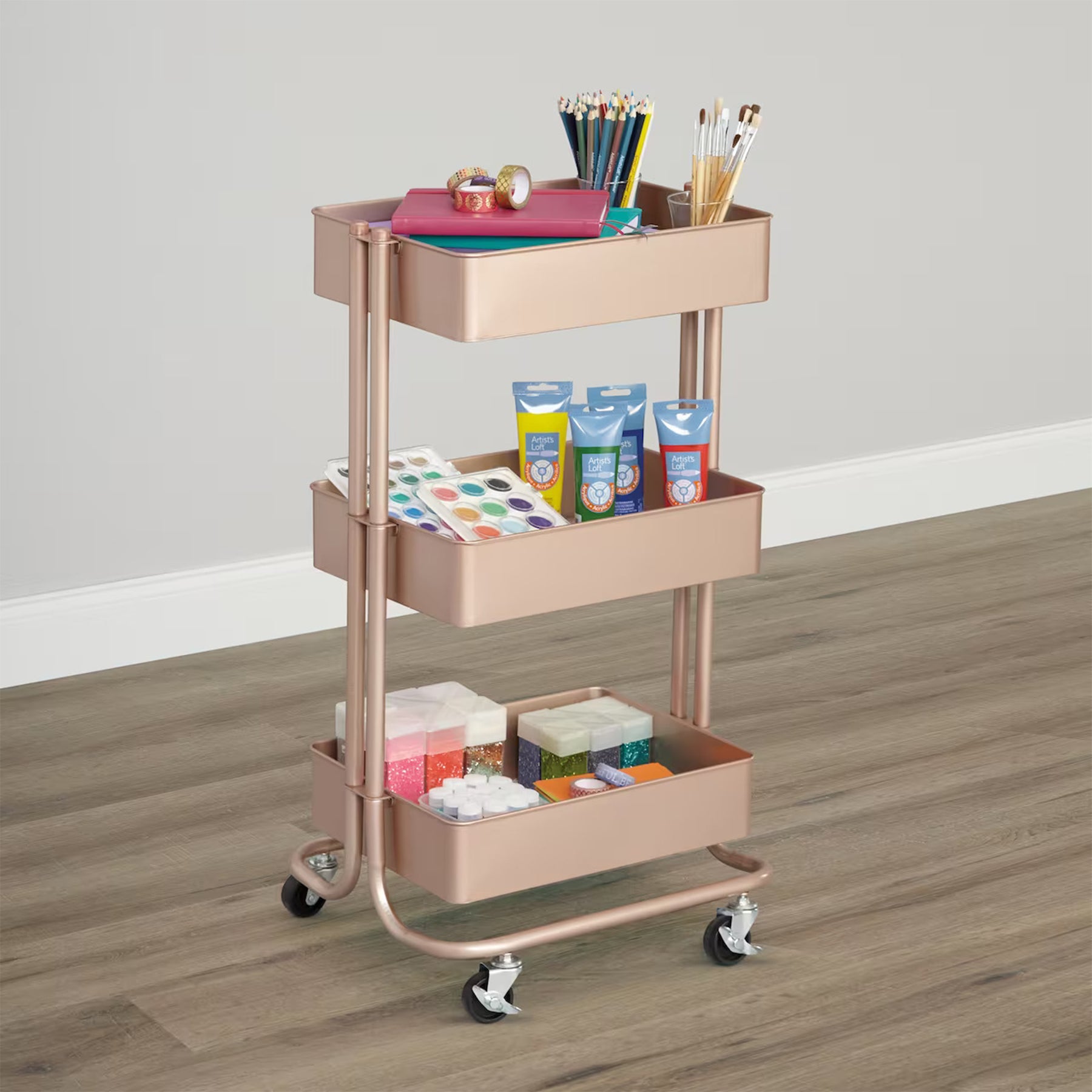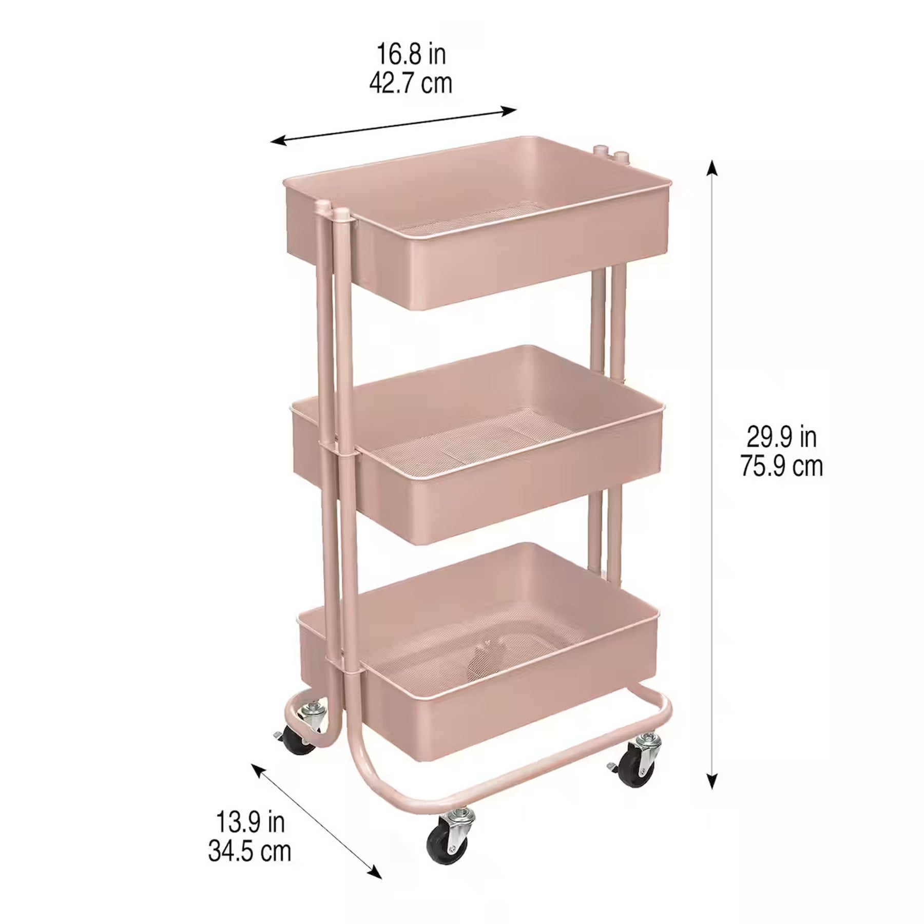 Simply Tidy 3 Tier Home or Office Organization Rolling Cart, Rose Gold(Open Box)