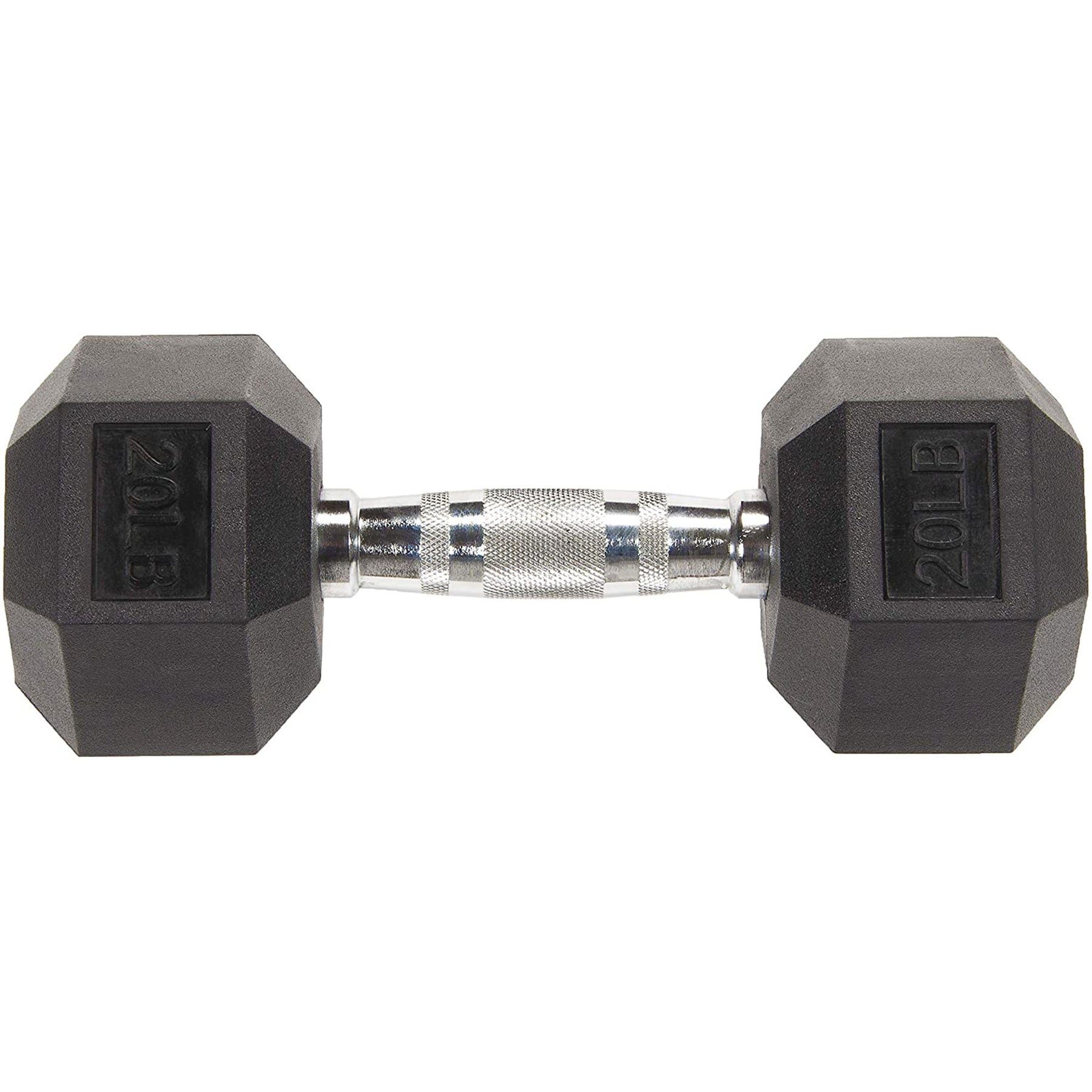 Sporzon Rubber Encased Pair of Hexagon Handheld Dumbbells, 20 Pounds (Open Box)
