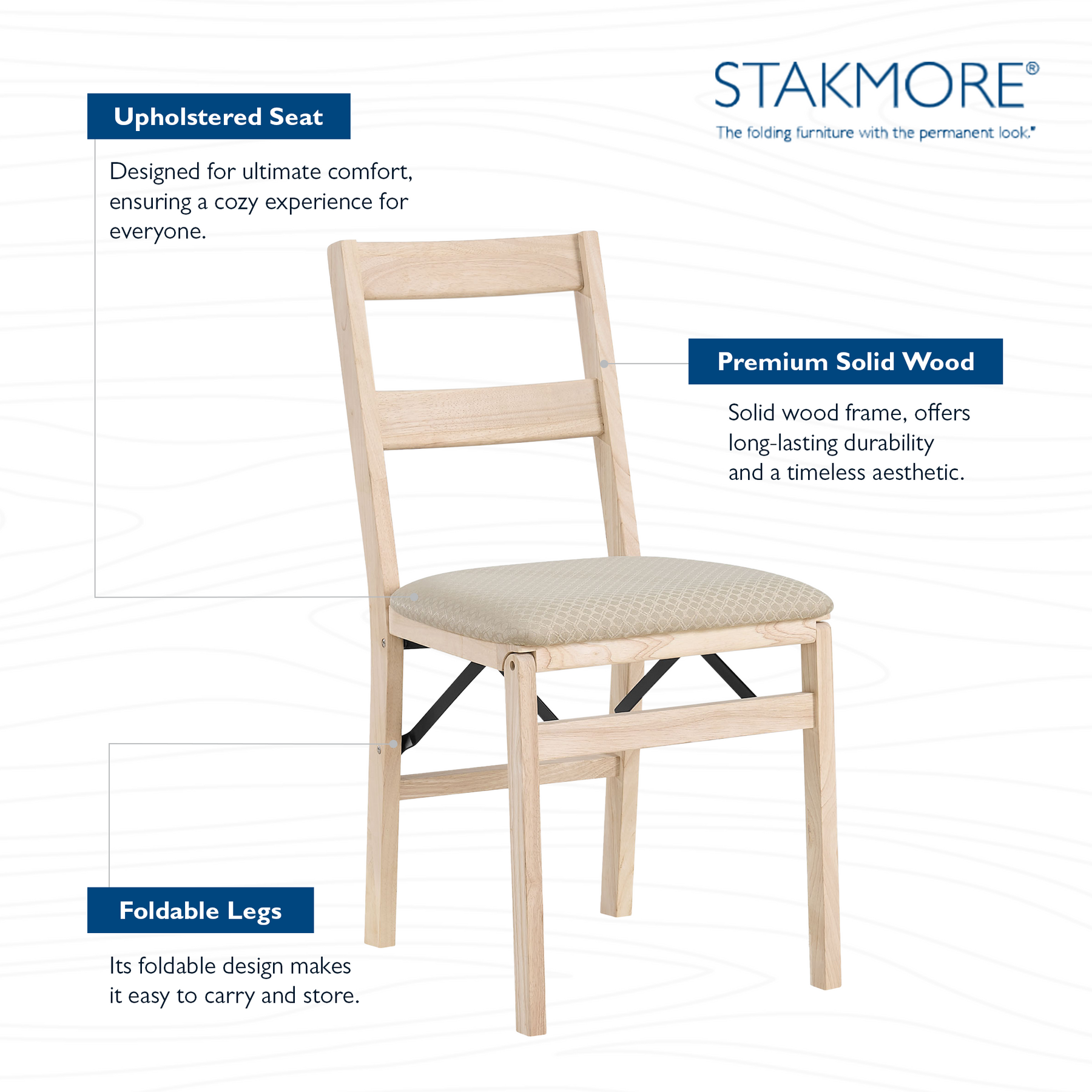 Stakmore Upholstered Seat Solid Folding Chairs, Set of 2, Unfinished (Open Box)