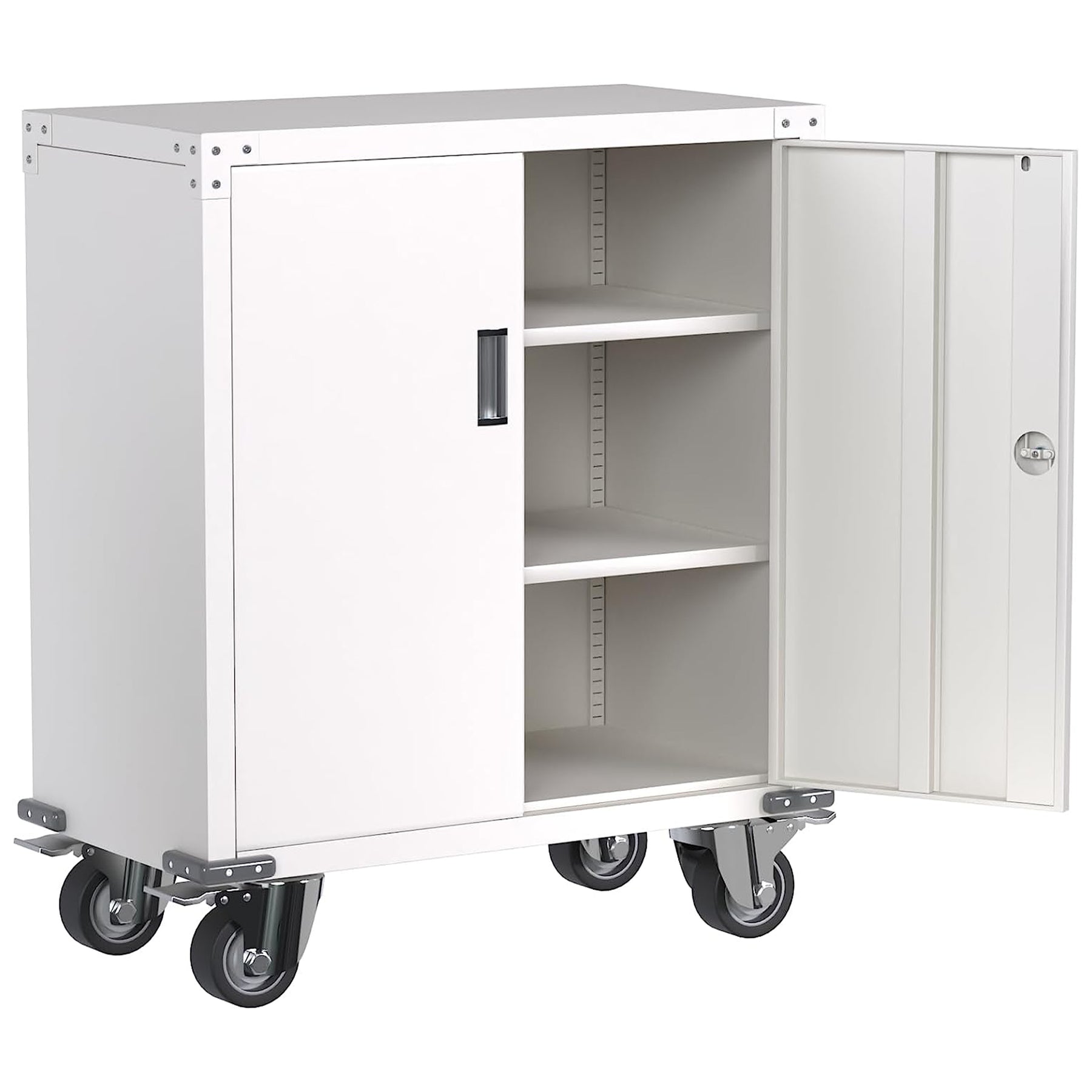 Steel Lockable Office Cabinet, Adjustable Shelves & Wheels, White (Open Box)