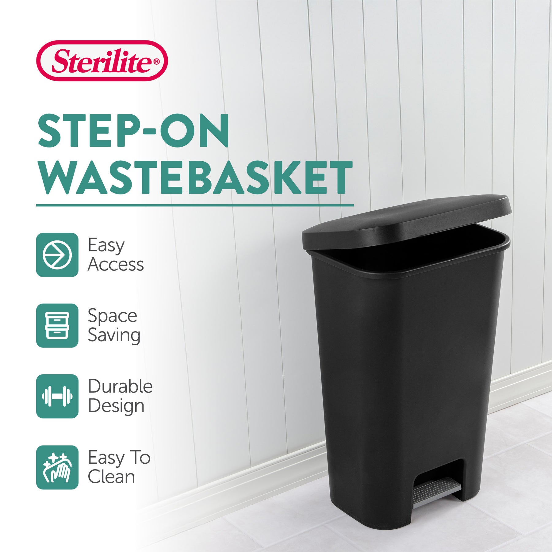 - Ribbed pedal allows for a hygienic and convenient waste disposal experience with a gentle tap from your foot to smoothly open the lid