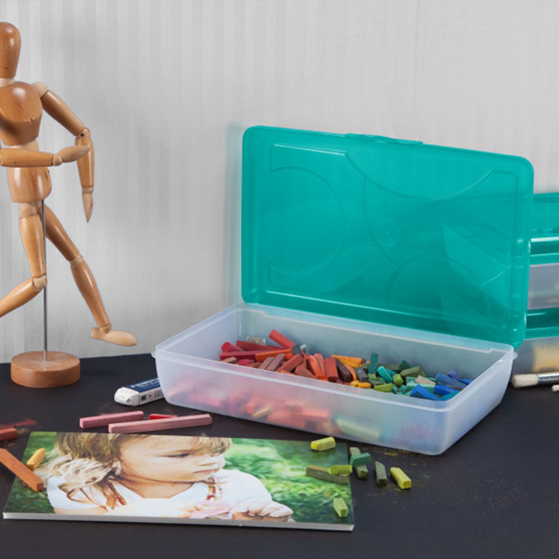A clear base gives you visibility, so you don't have to guess what's inside. The tinted translucent top adds style and gives you the ability to show off your favorite color without sacrificing visibility. Pop on the hinged lid with the snapping latch to keep all of your supplies stored away securely. Save space by stacking multiple storage boxes with the indexed lids.