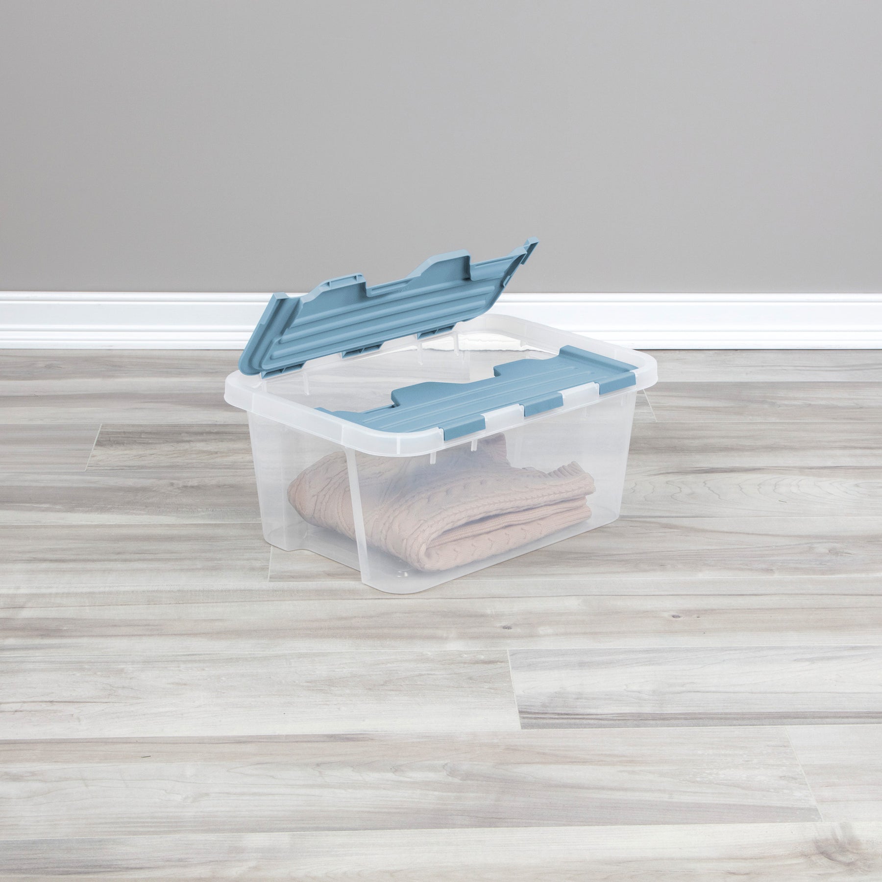 Sterilite 20 Qt Hinged Lid Storage Box, Plastic Container, Washed Blue, 18 Pack