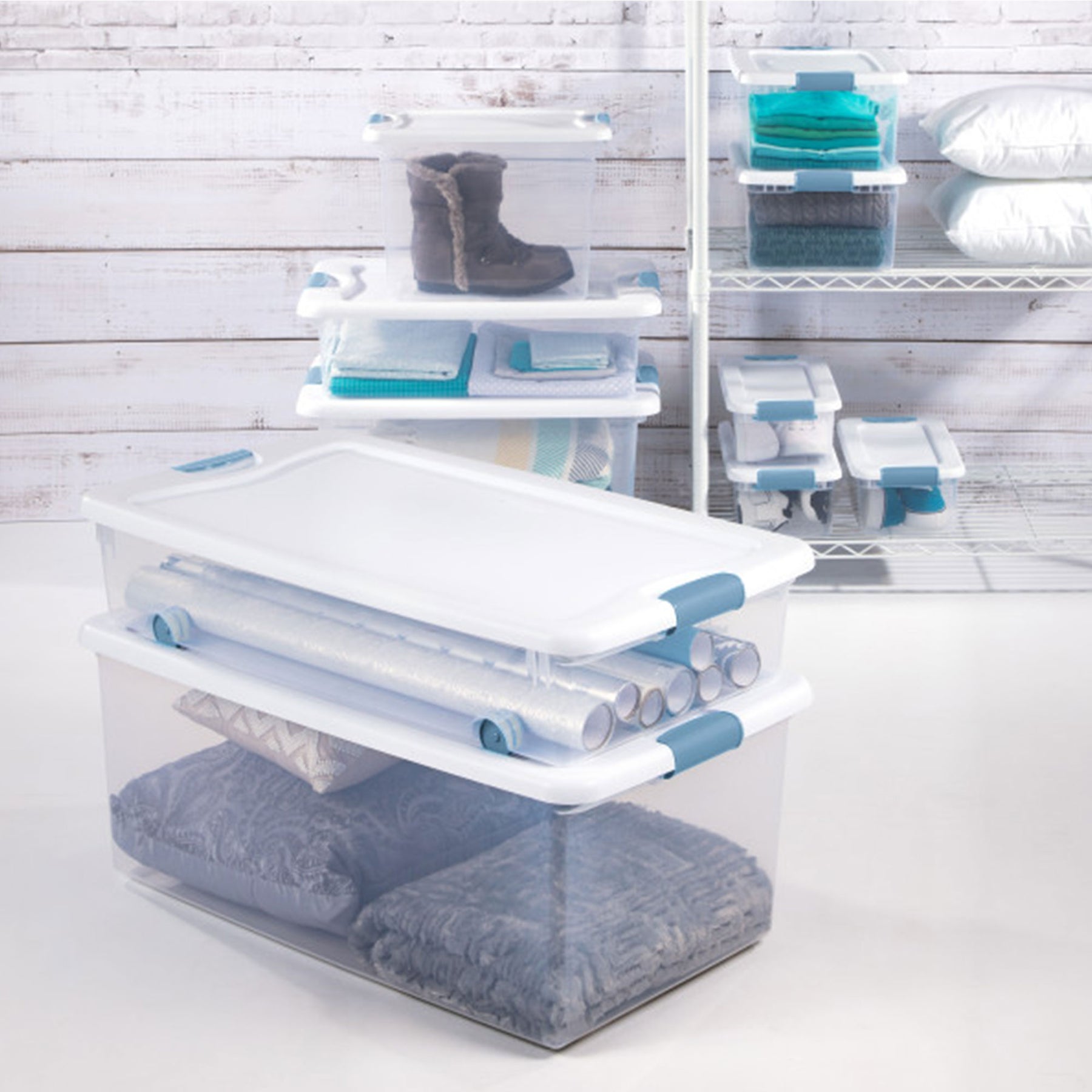 Need help getting organized? These Sterilite 25-Quart Capacity Clear Storage Totes will help you with your moving or storage needs.